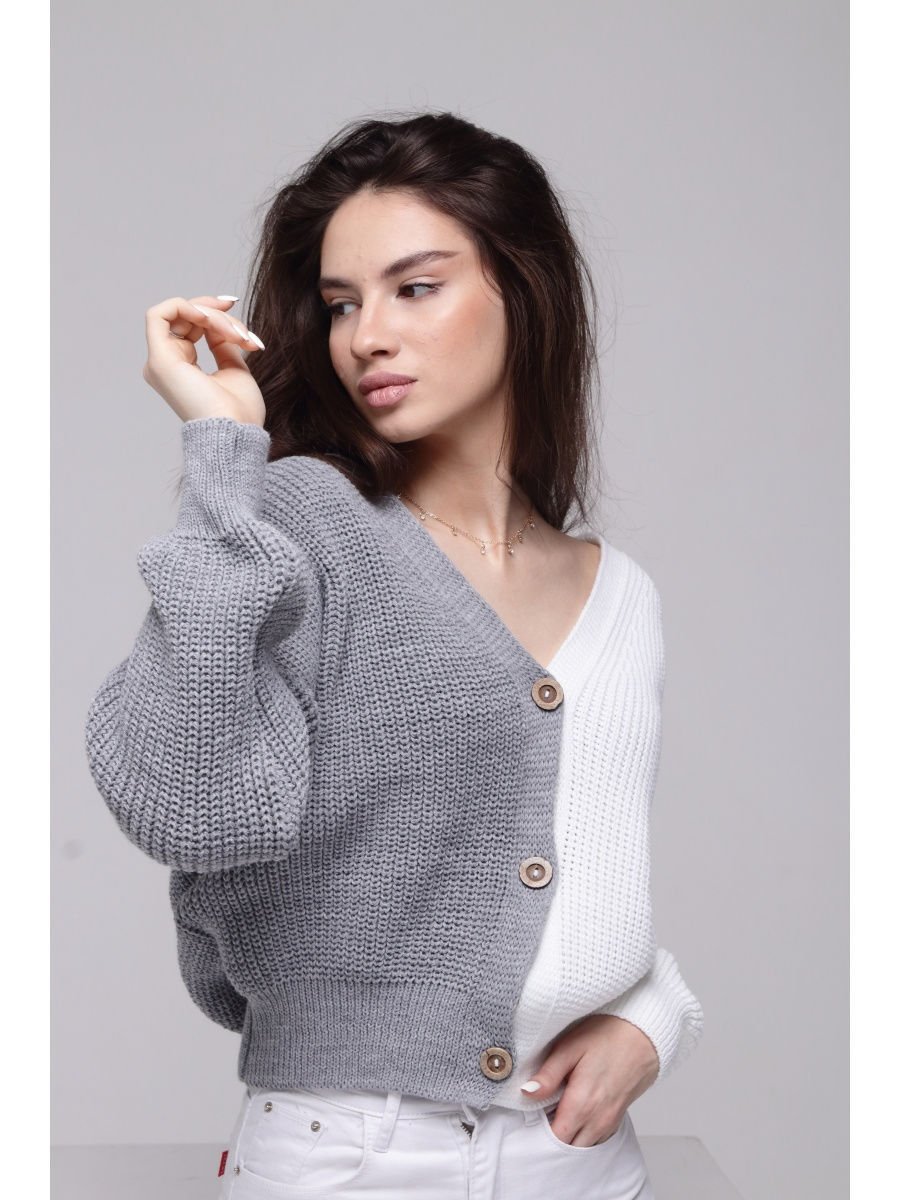 Двухцветный кардиган на пуговицах женский