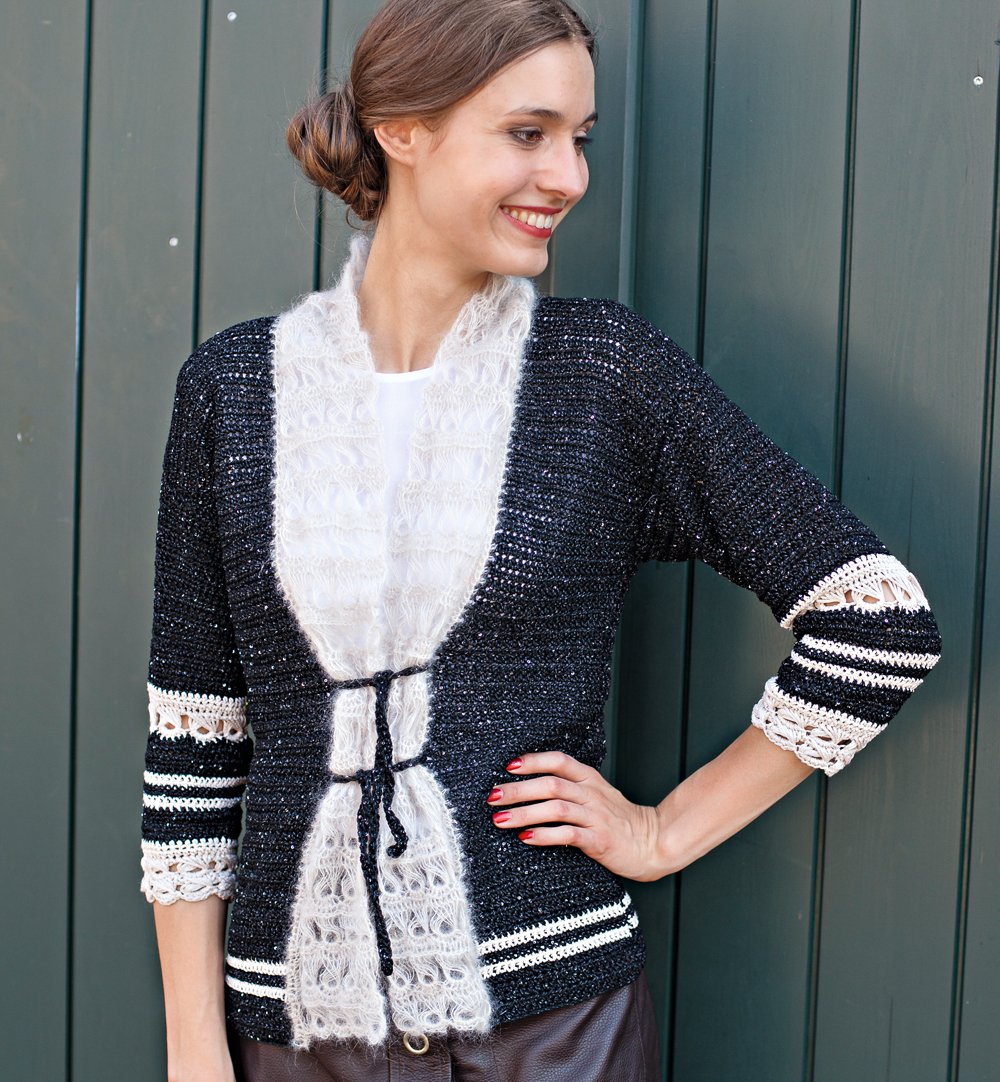 Ажурный двухцветный жакет