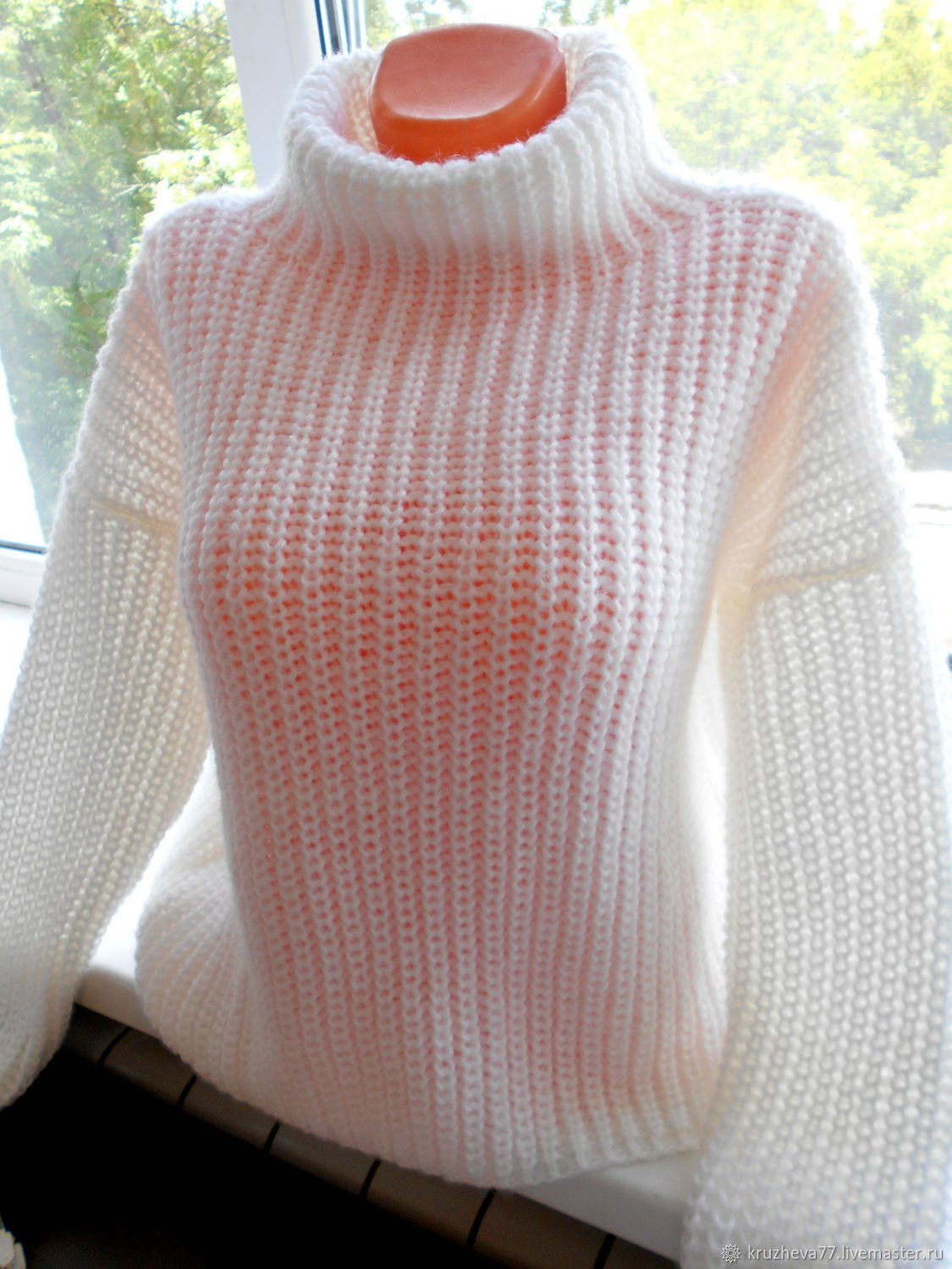 Белый вязаный свитер женский