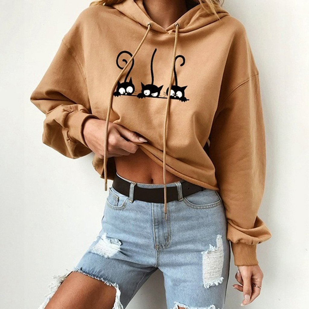 Ladies Casual Hoodies Hooded Sweatshirts Pullover Jumper Winter long Sleeve Tops