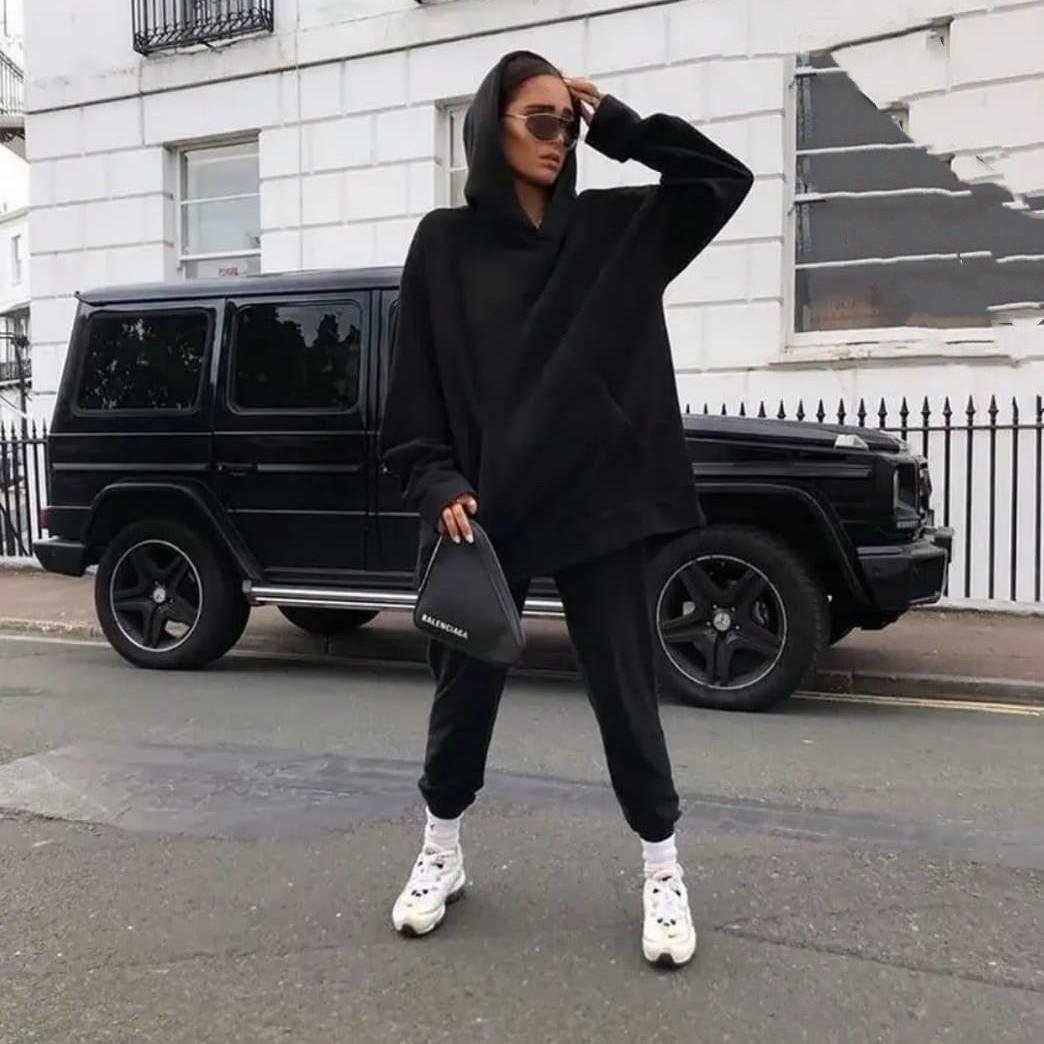 Черный спортивный костюм с худи