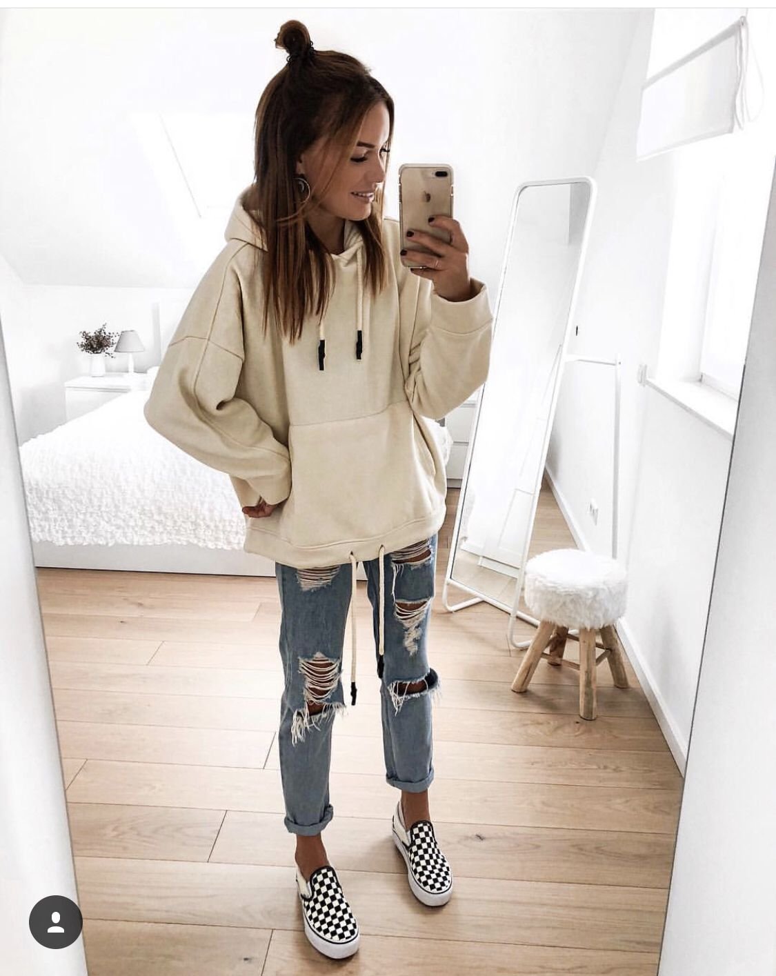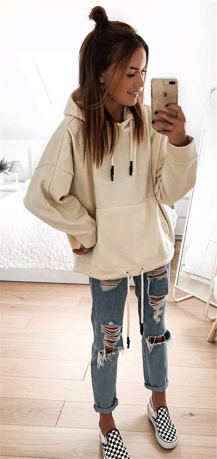 Джинсы и худи лук