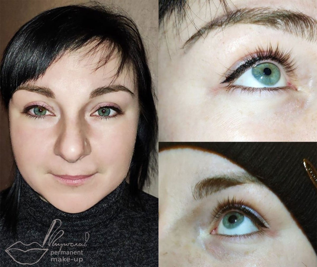 Перманентный макияж межресничка с растушевкой нижнее веко