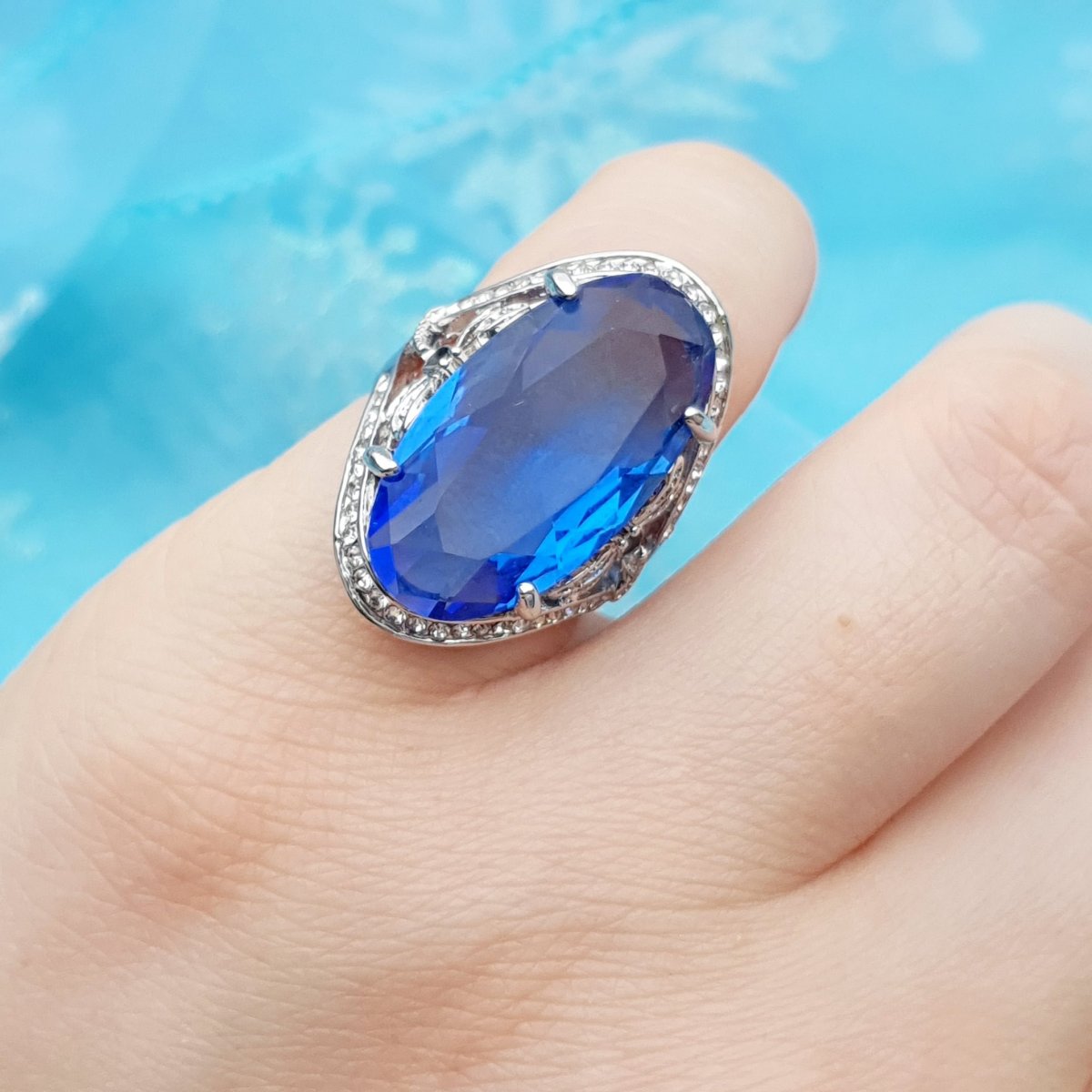 Кольцо с крупным камнем овал