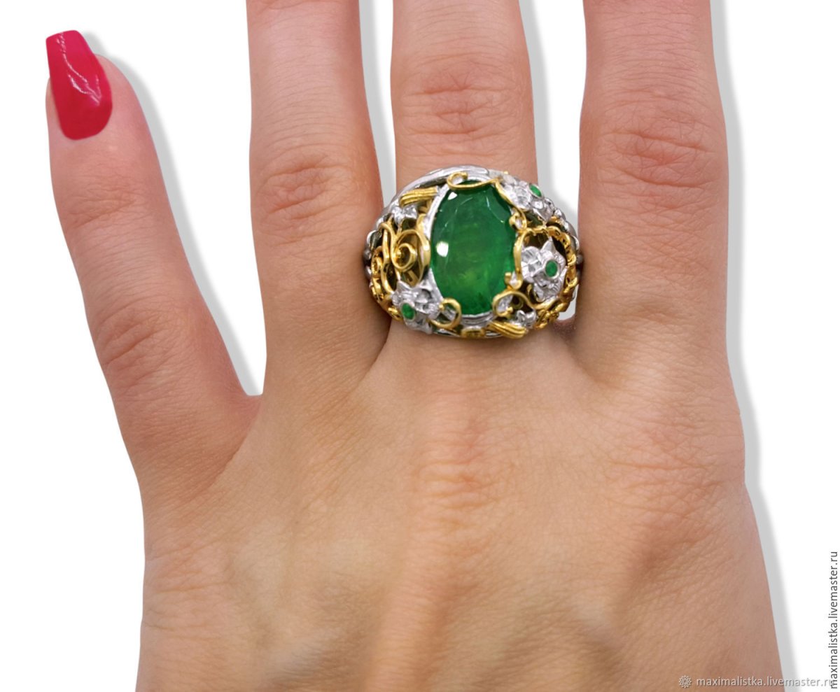 Кольцо с зеленым камнем