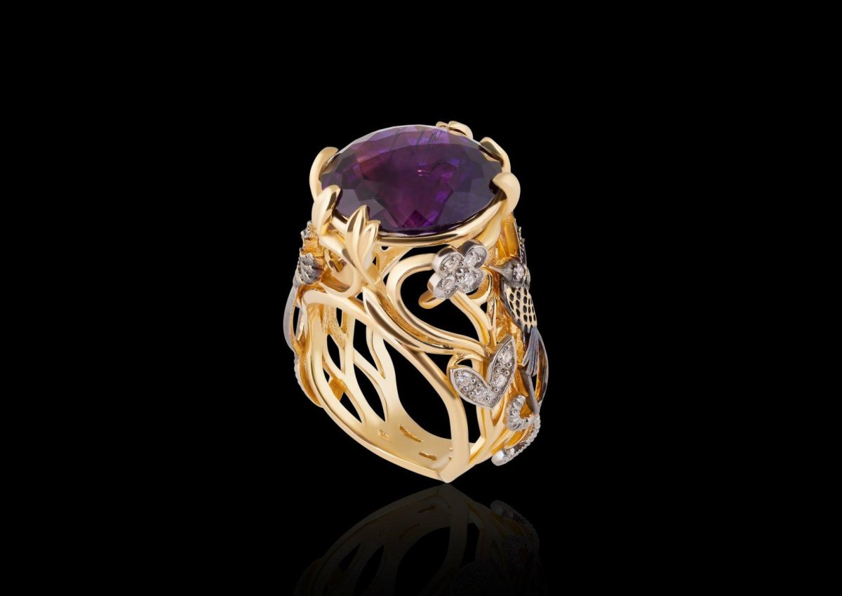 Золотое кольцо с камнем аметрином