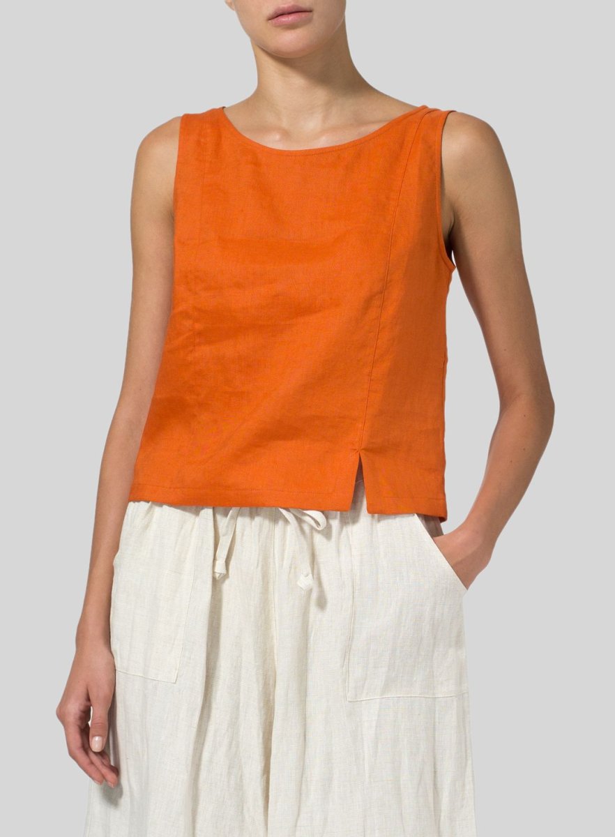 Льняная блузка без рукавов