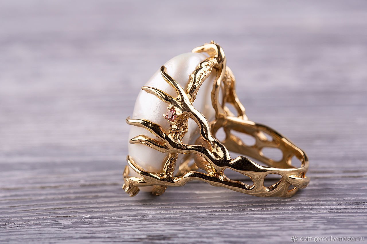 Золотое кольцо с барочным жемчугом