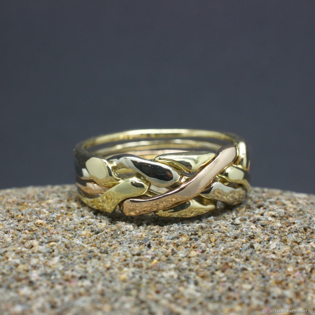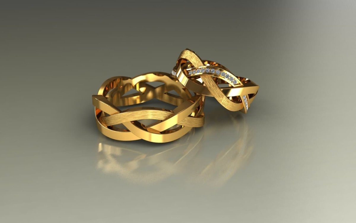 Красивые плетеные золотые кольца