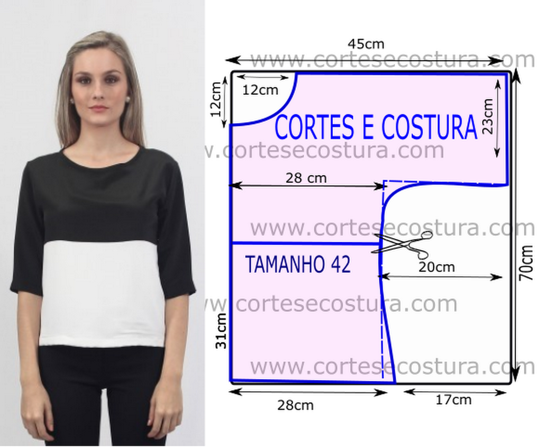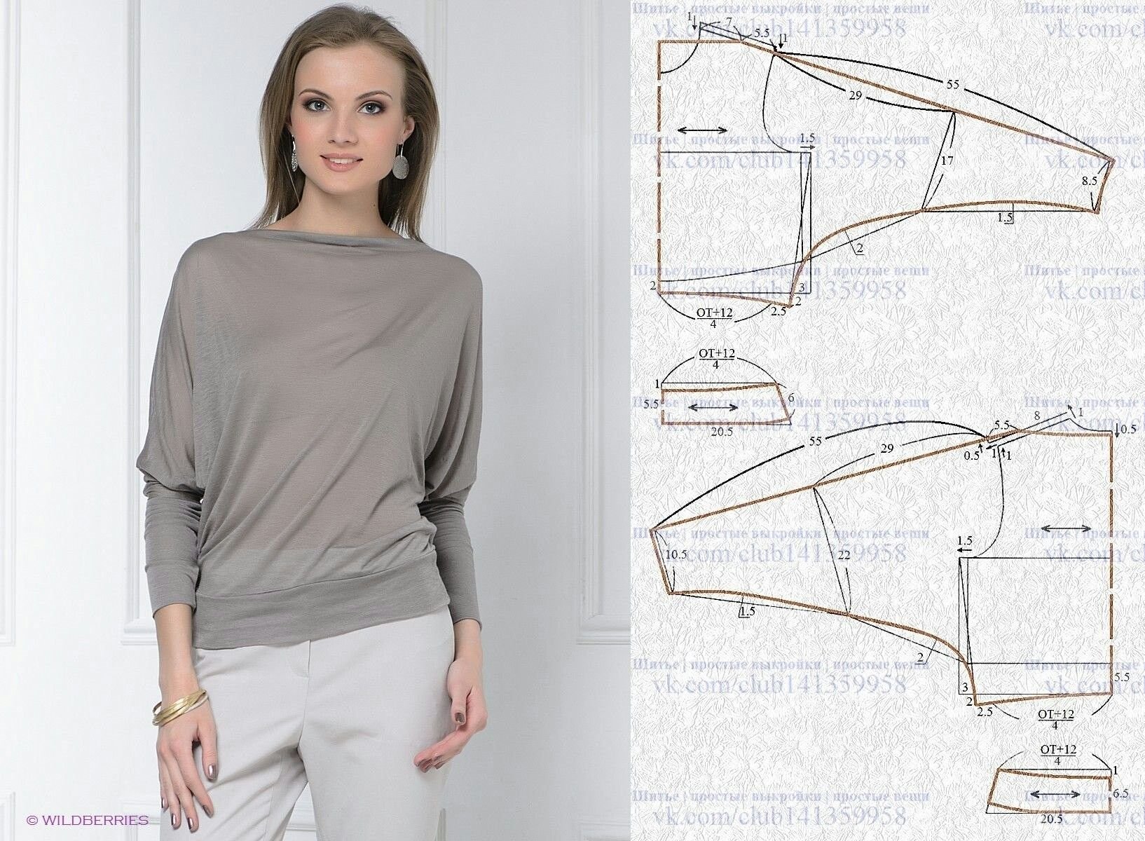 Выкройка блузы с цельнокроеным рукавом 48 размера
