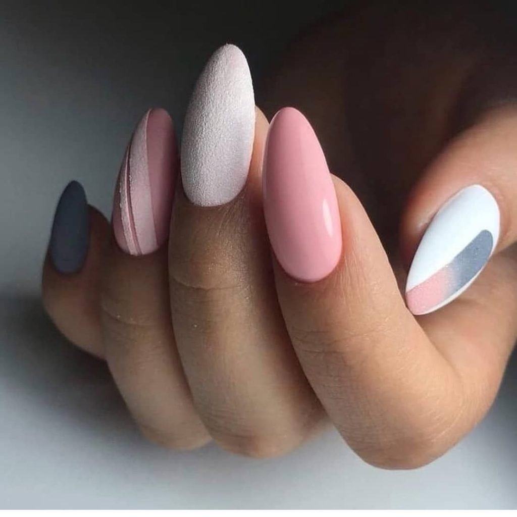 Розовый маникюр миндальной
