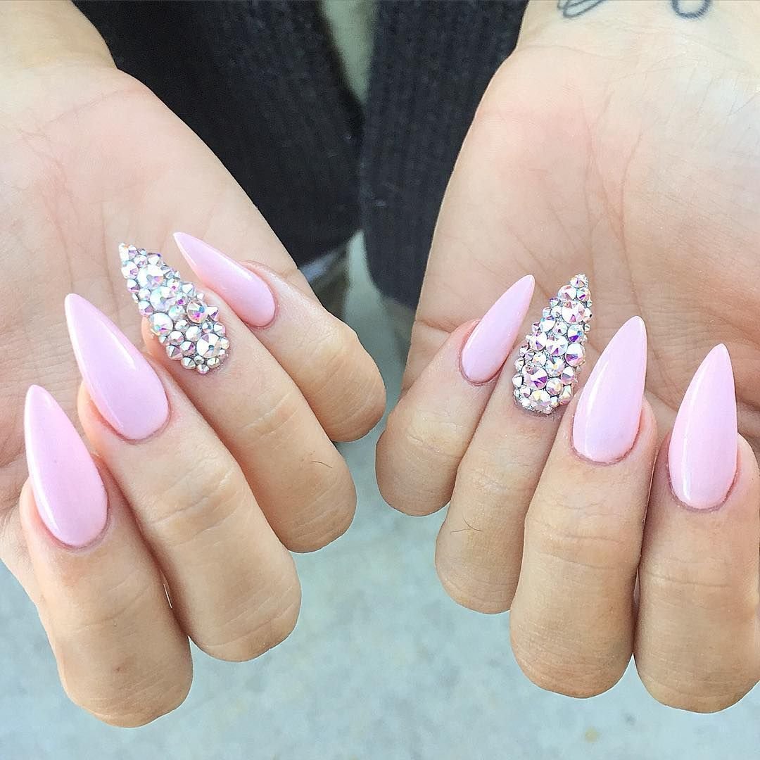 Нежно розовые острые ногти