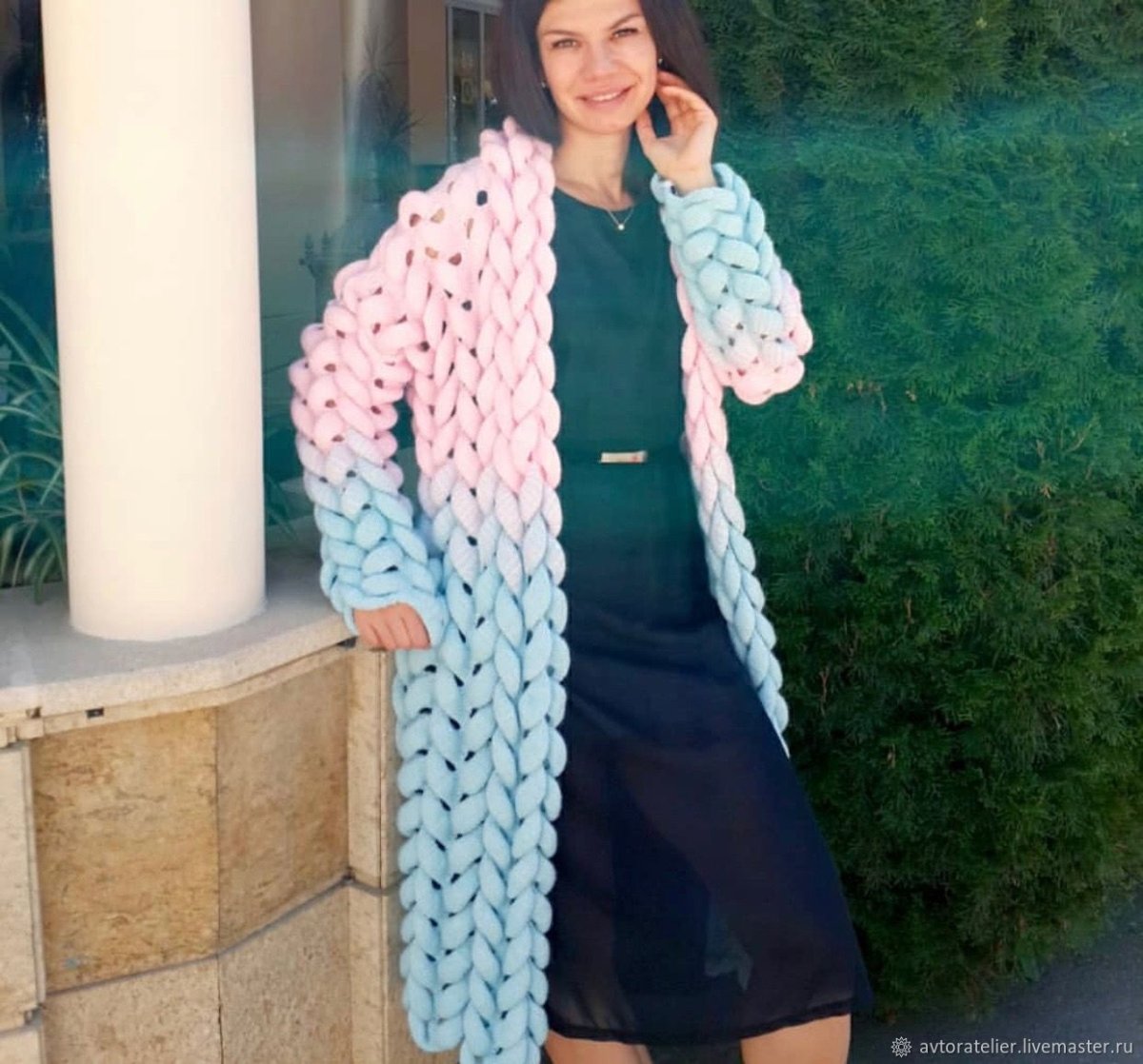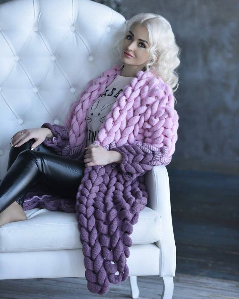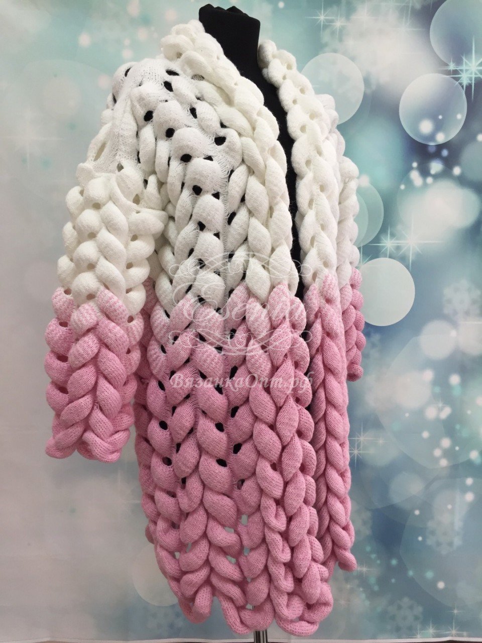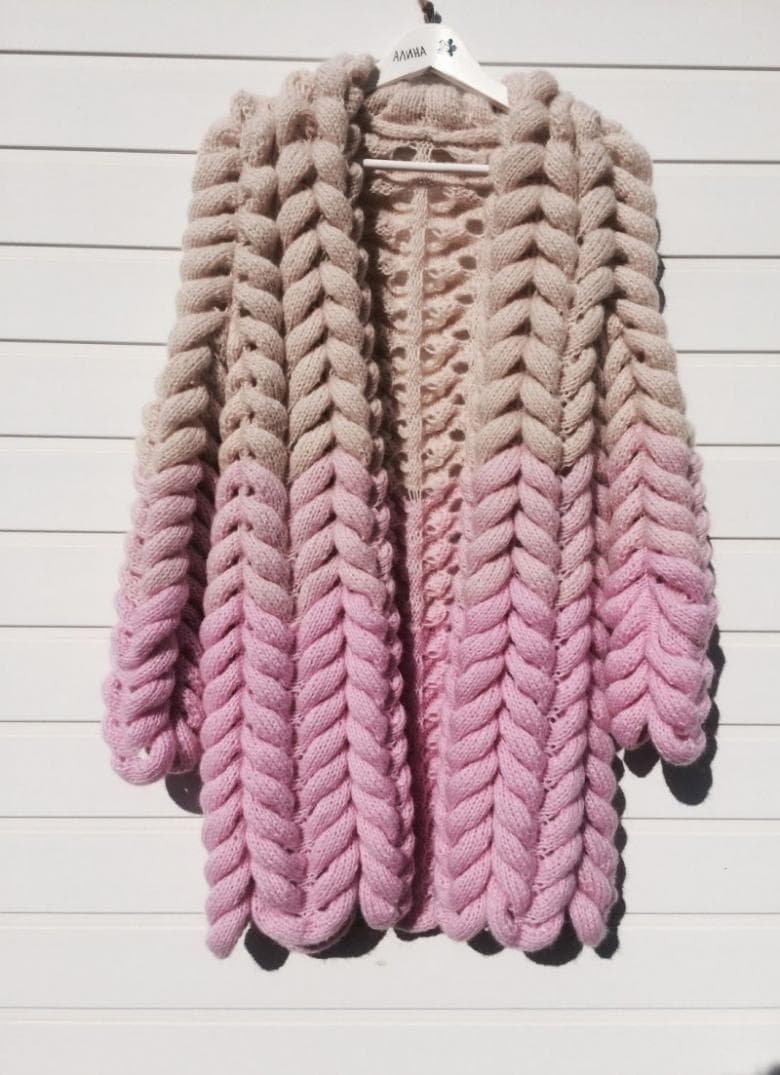 Кардиган крупной вязки голубой розовый