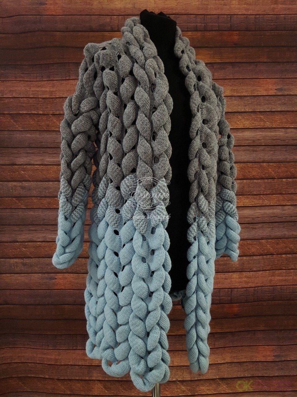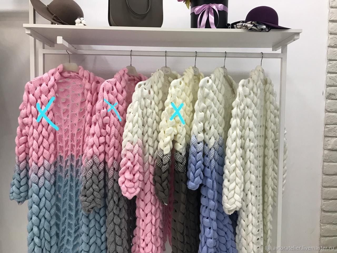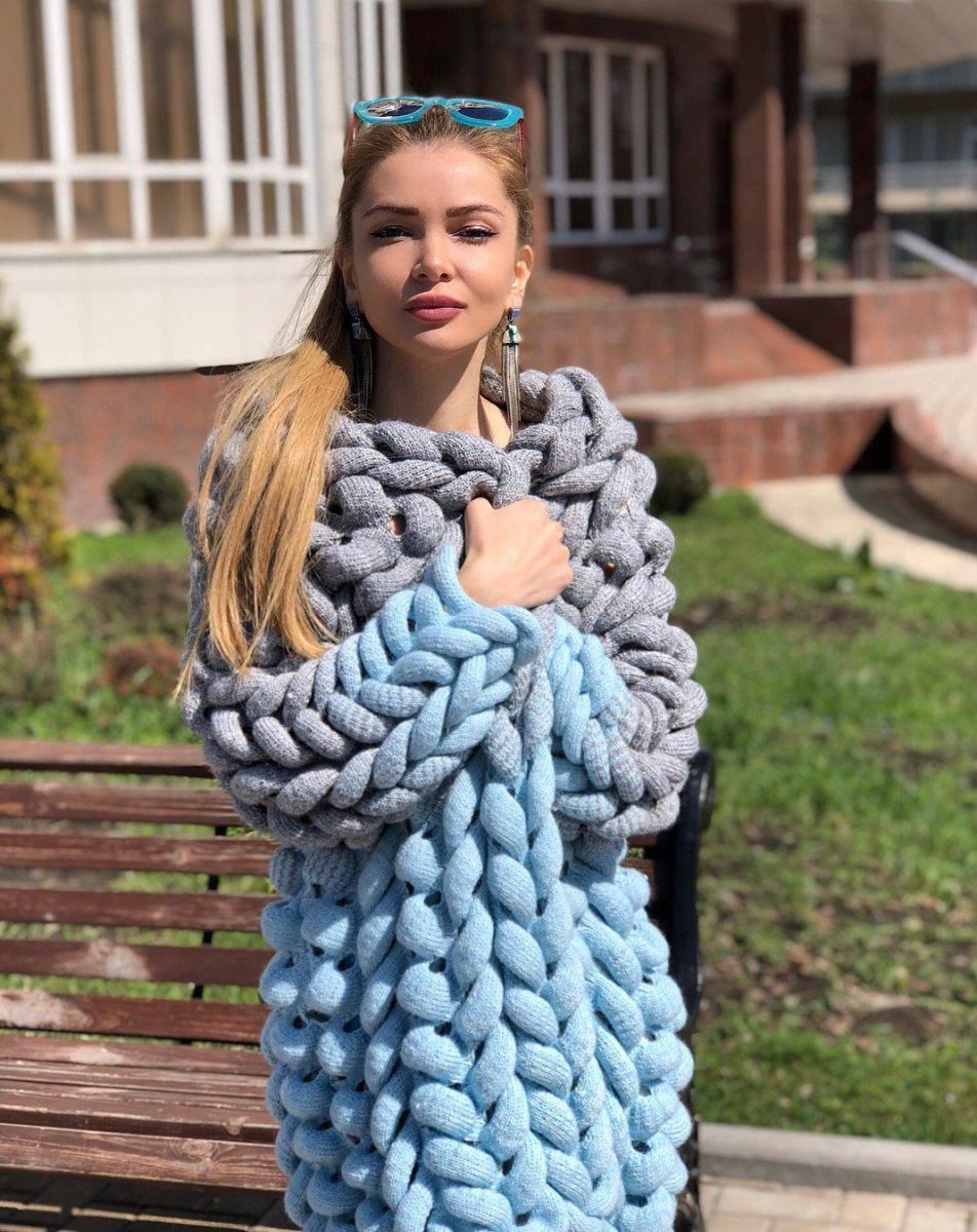 Кардиган крупной вязки голубой розовый