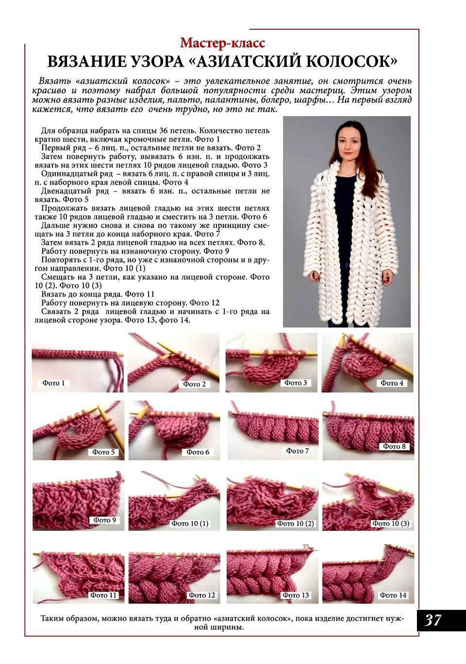 Вязание азиатский колосок спицами схемы с описанием