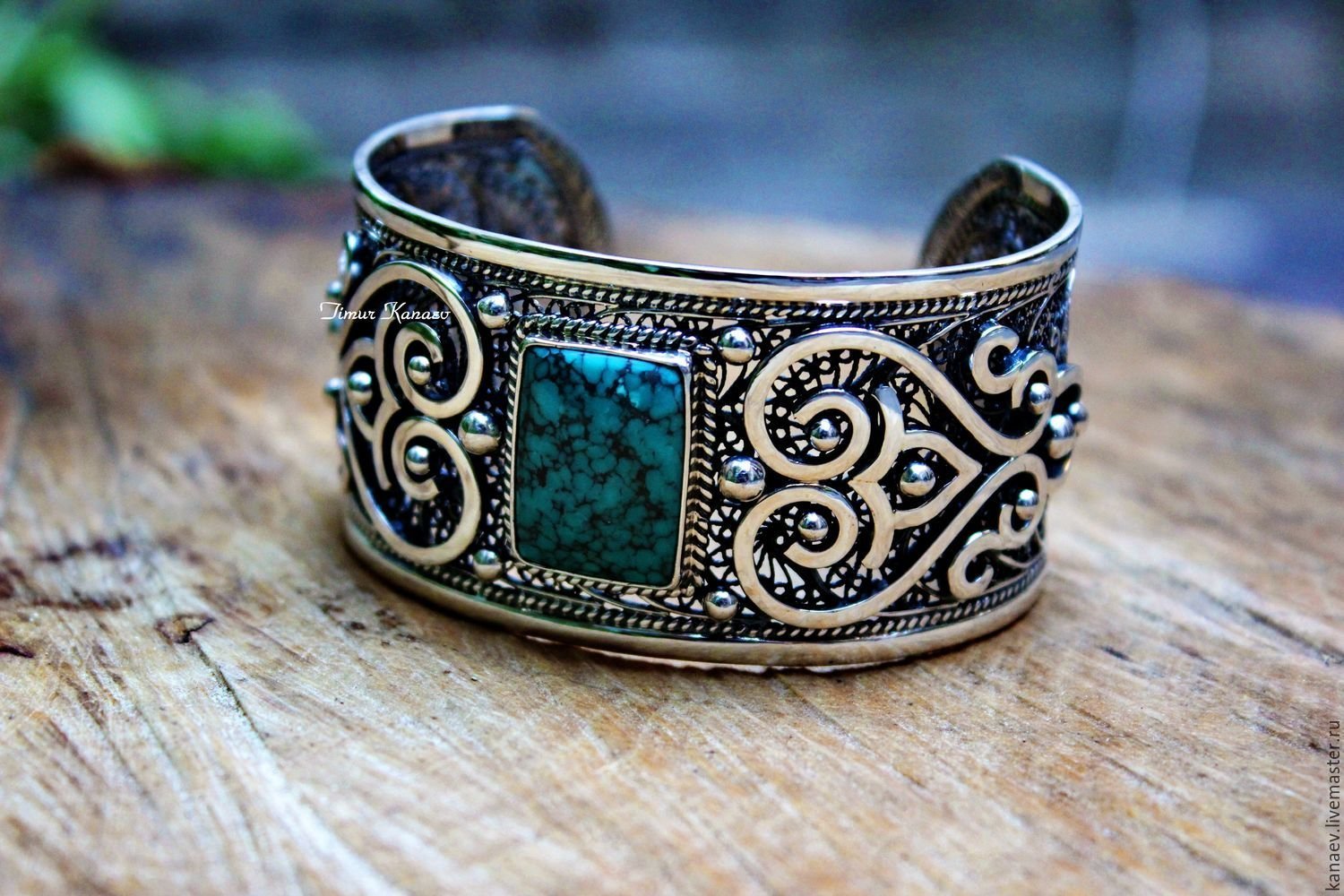 Браслет с бирюзой эмалью Кубачи