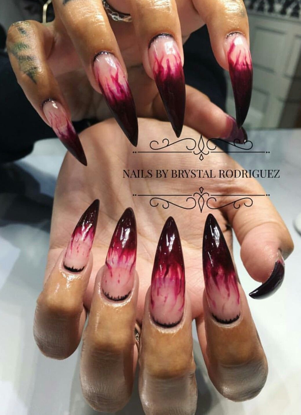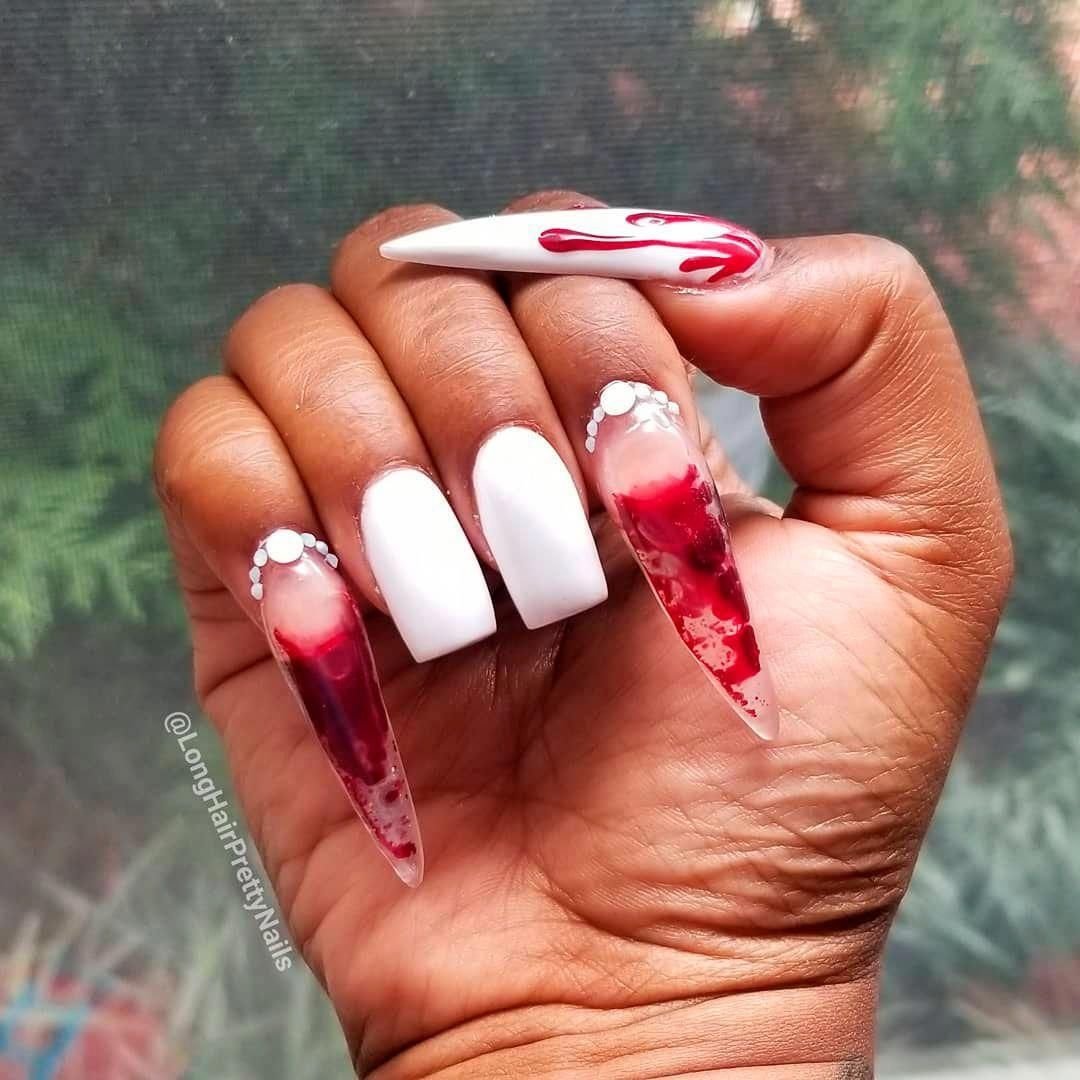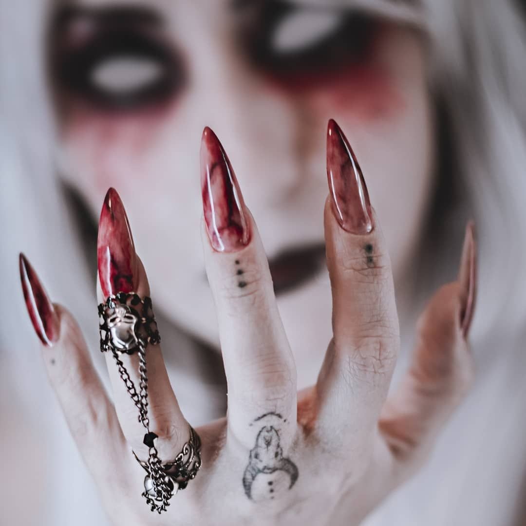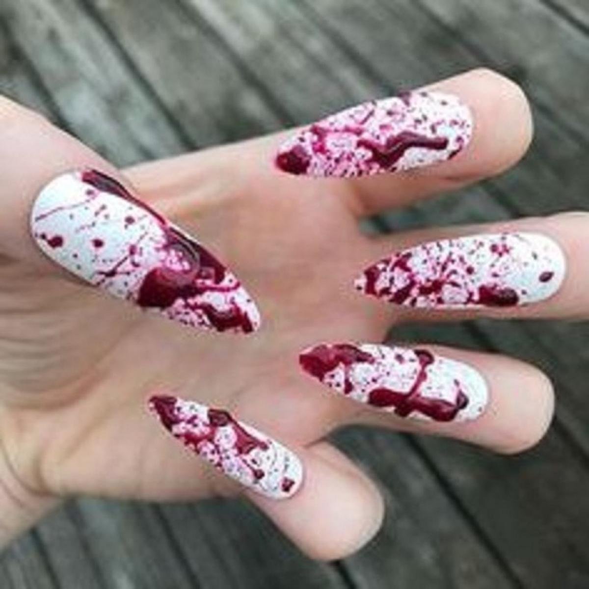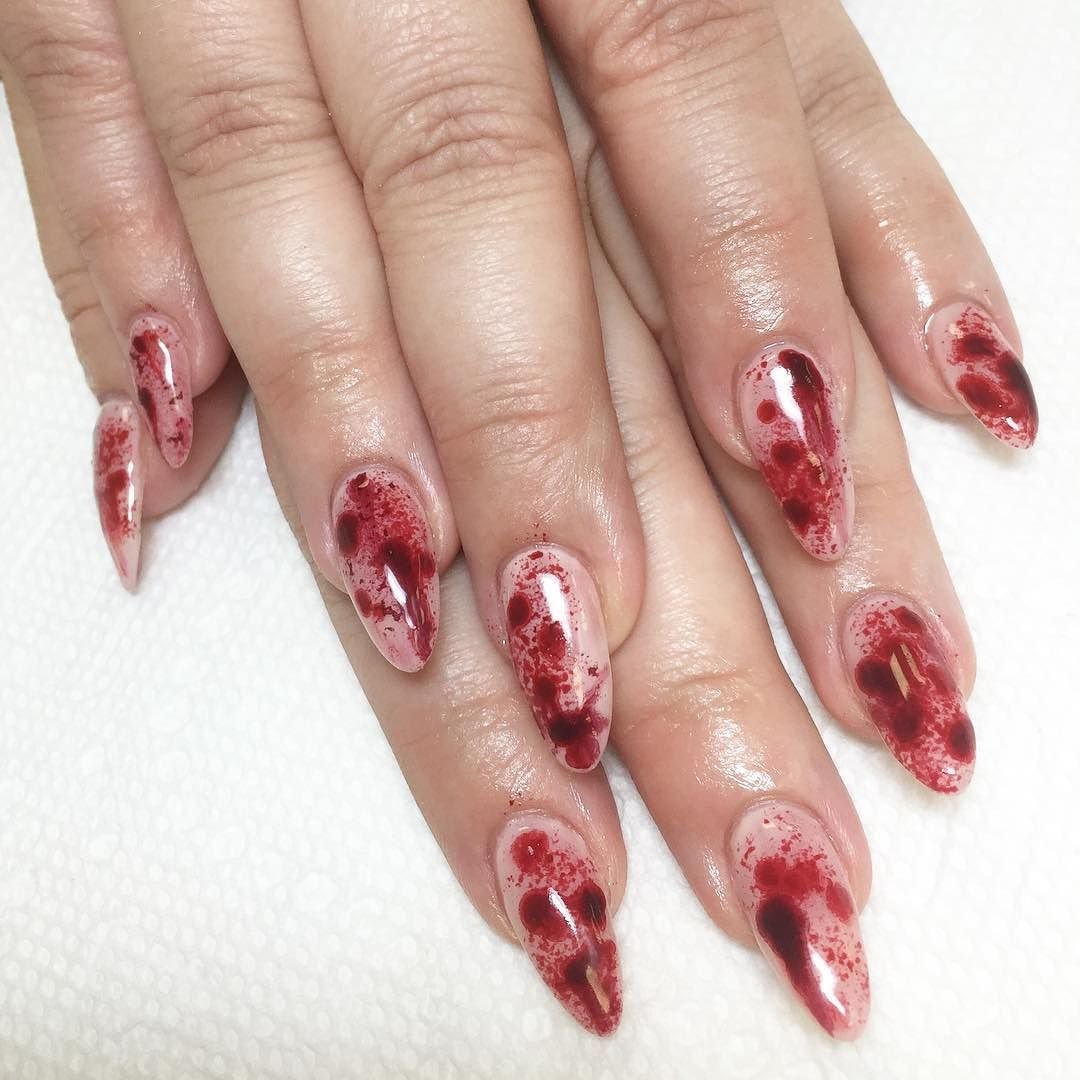 Кровавый маникюр на длинные ногти