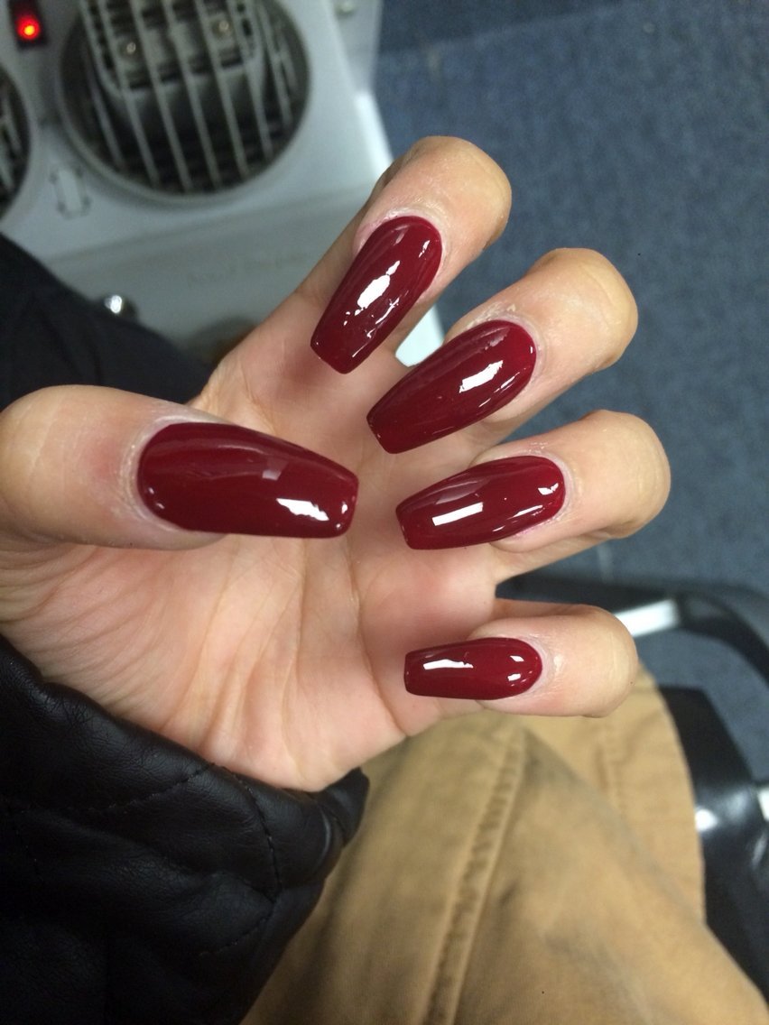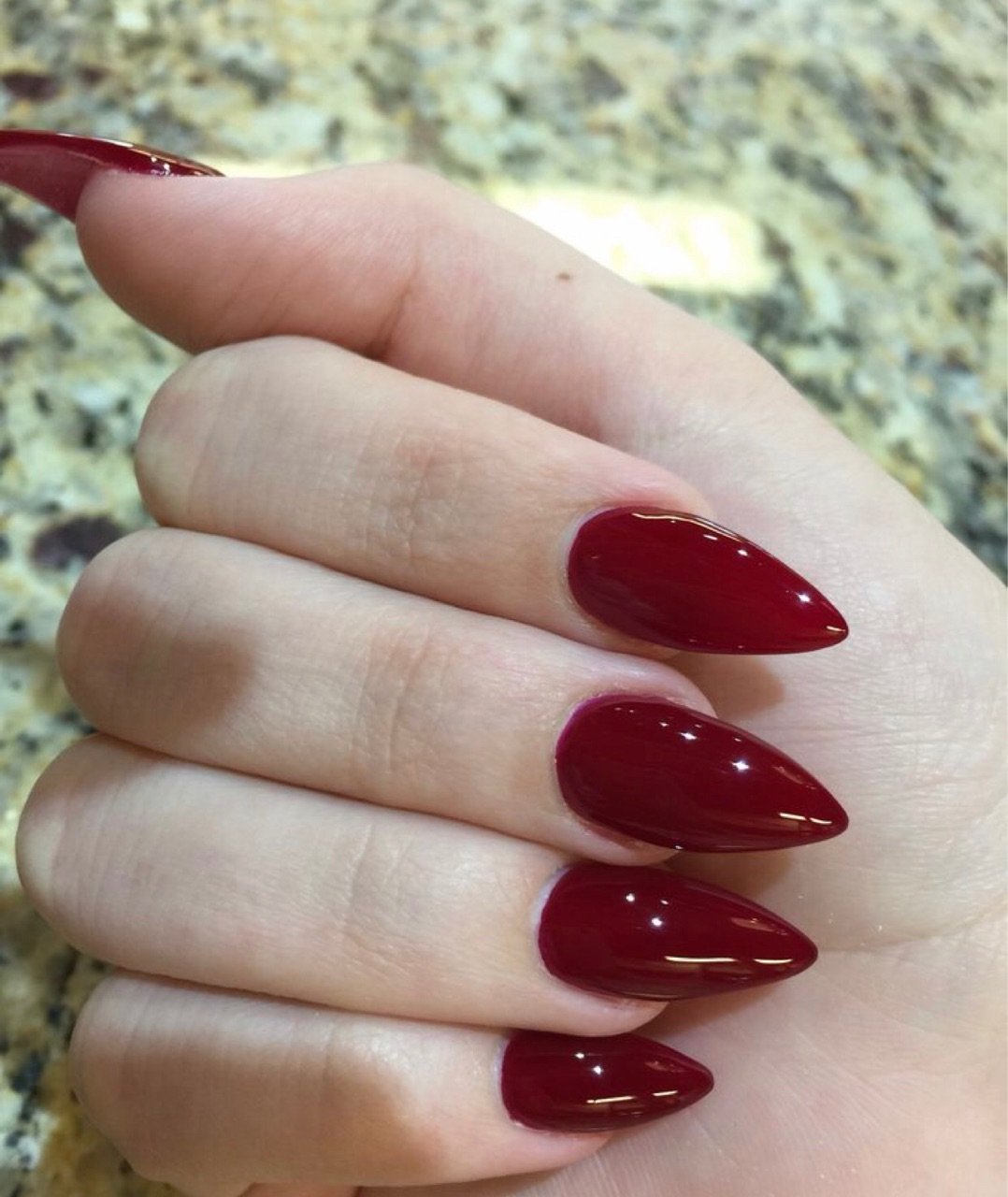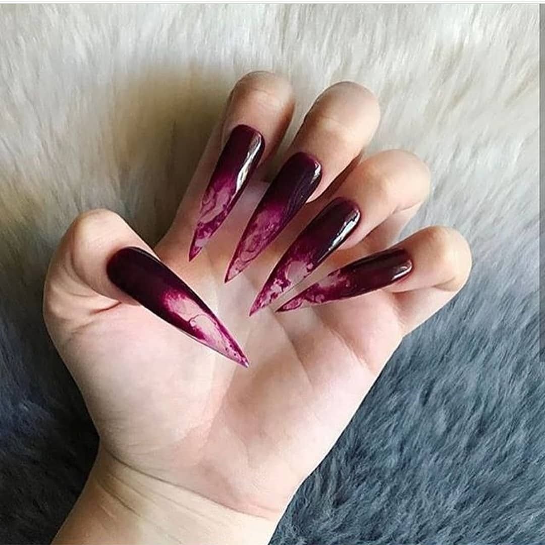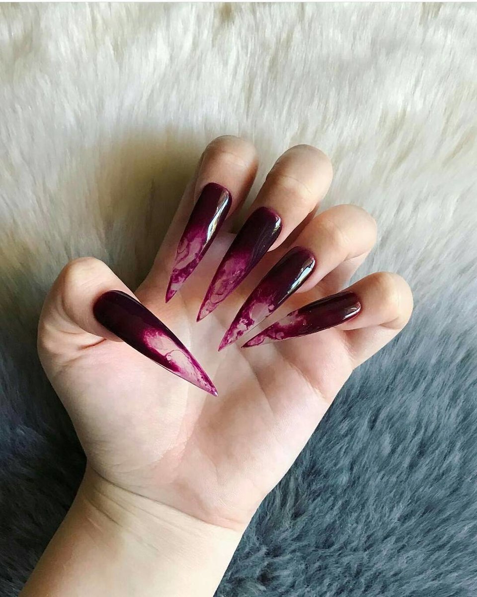 Бордовые острые ногти