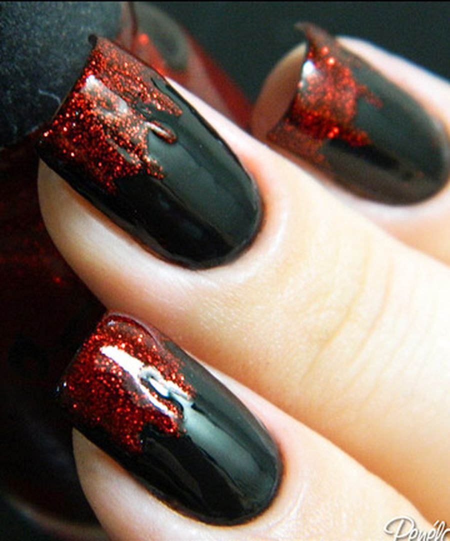 Маникюр в вампирском стиле с красными блестками
