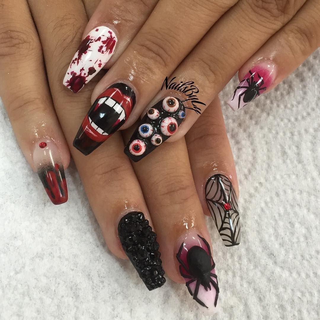 Маникюр на Хэллоуин на длинные ногти