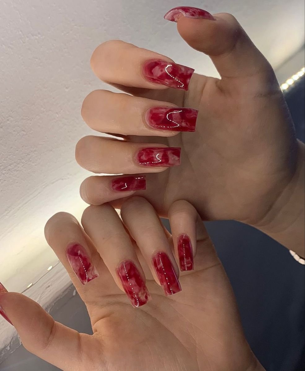 Красные ногти с разводами