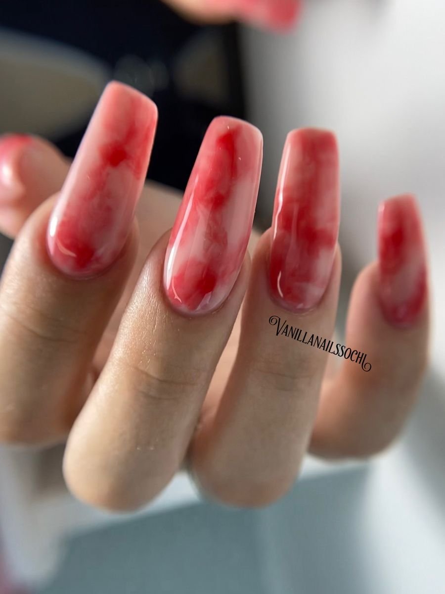 Красный маникюр с разводами