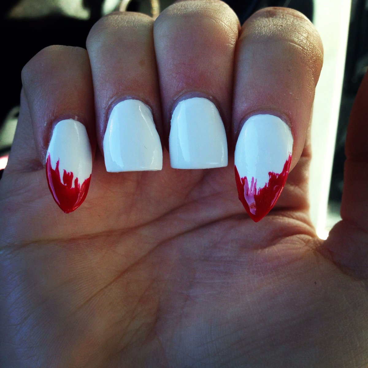 Белый маникюр с красными подтёками