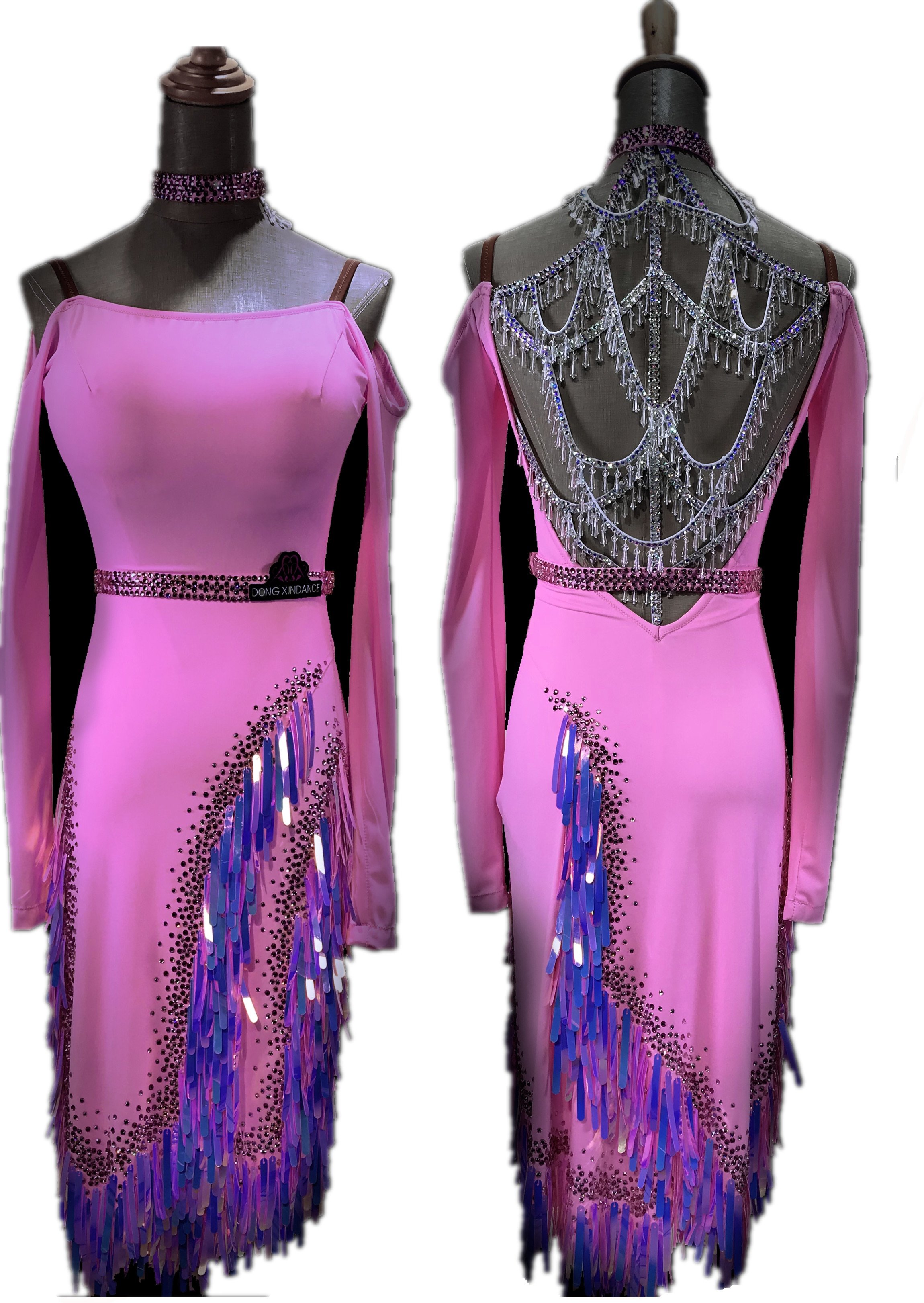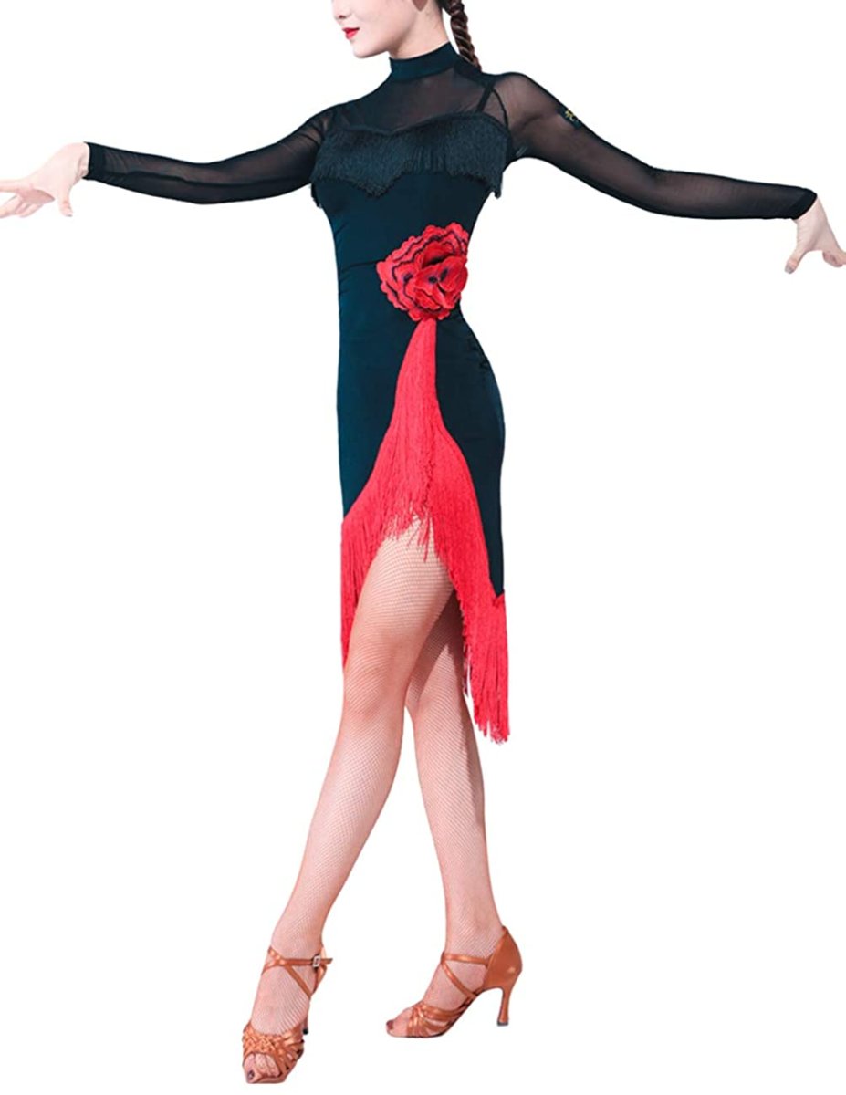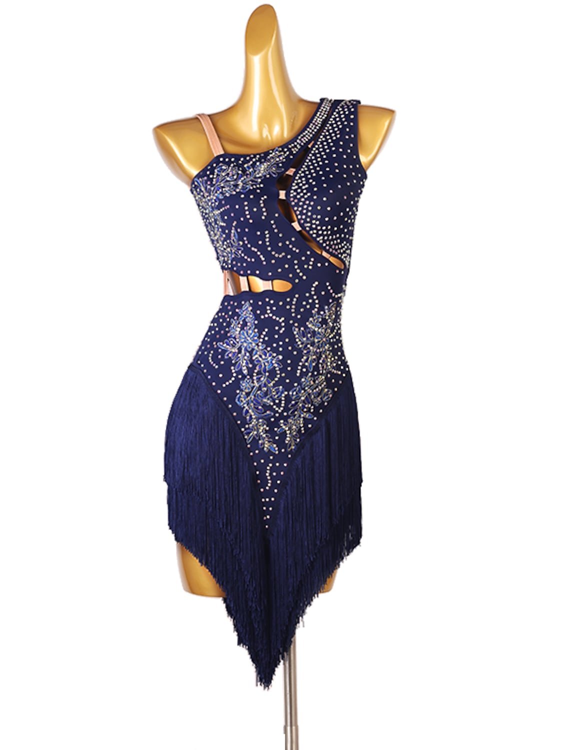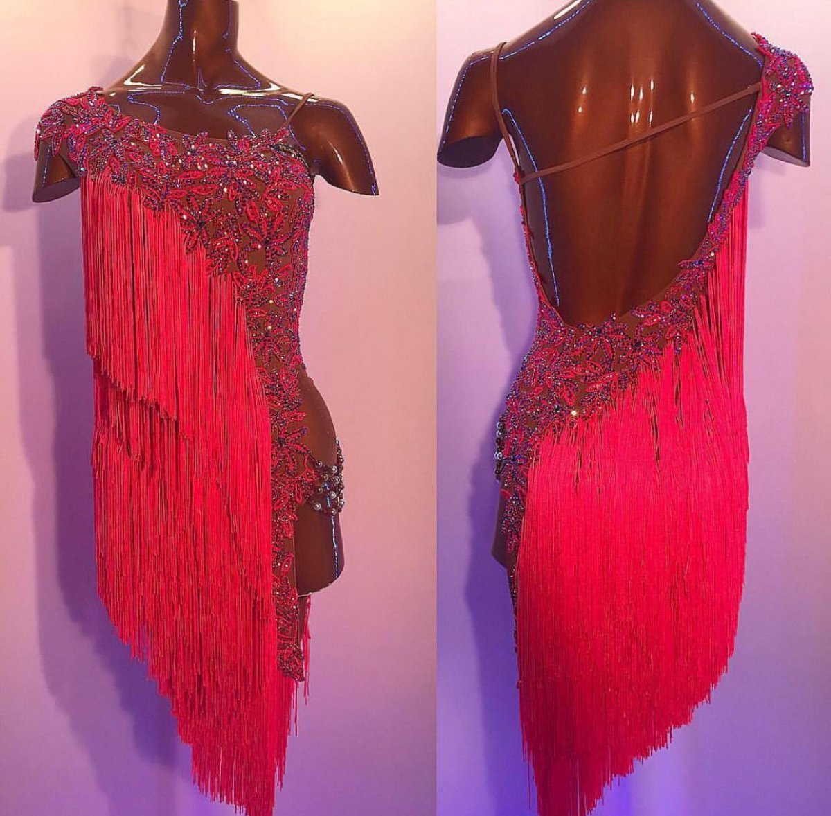 Irregular Latin Dress Sleeveless Tassel bare back female Latin Dance Dress women Latin Dance Suit belly Ballroom
