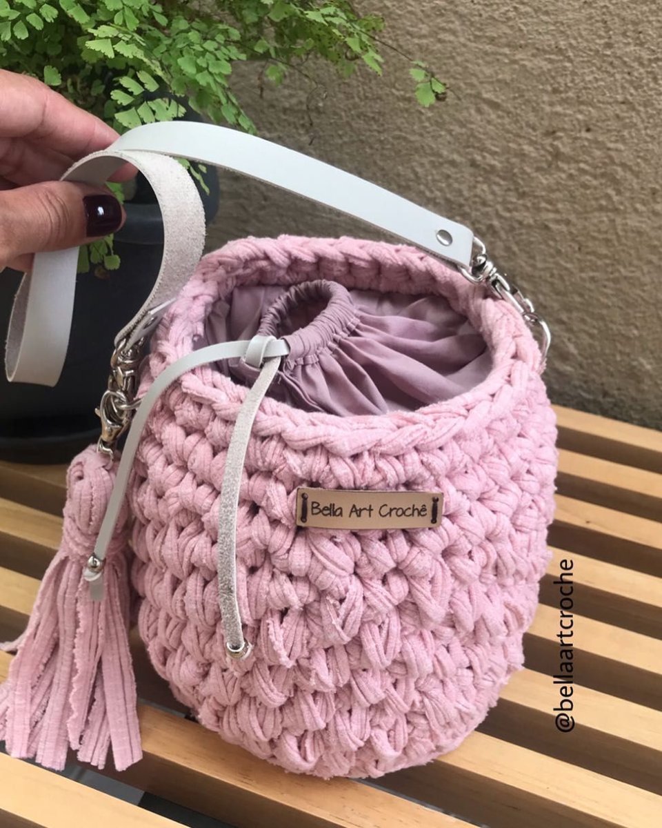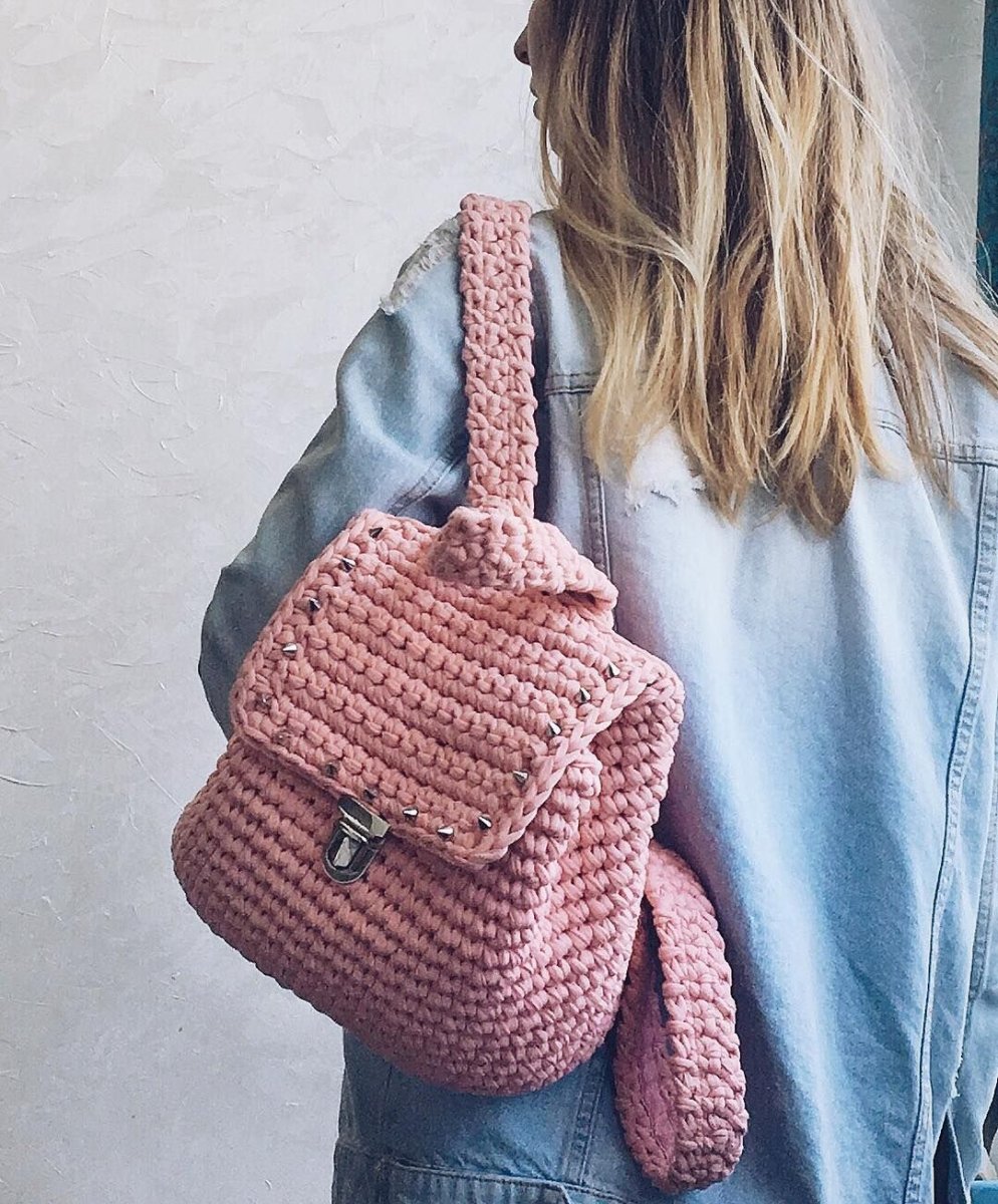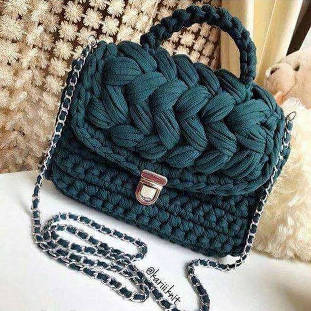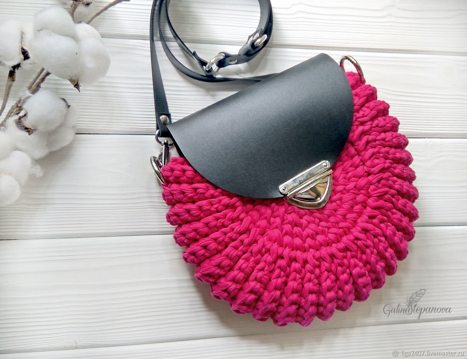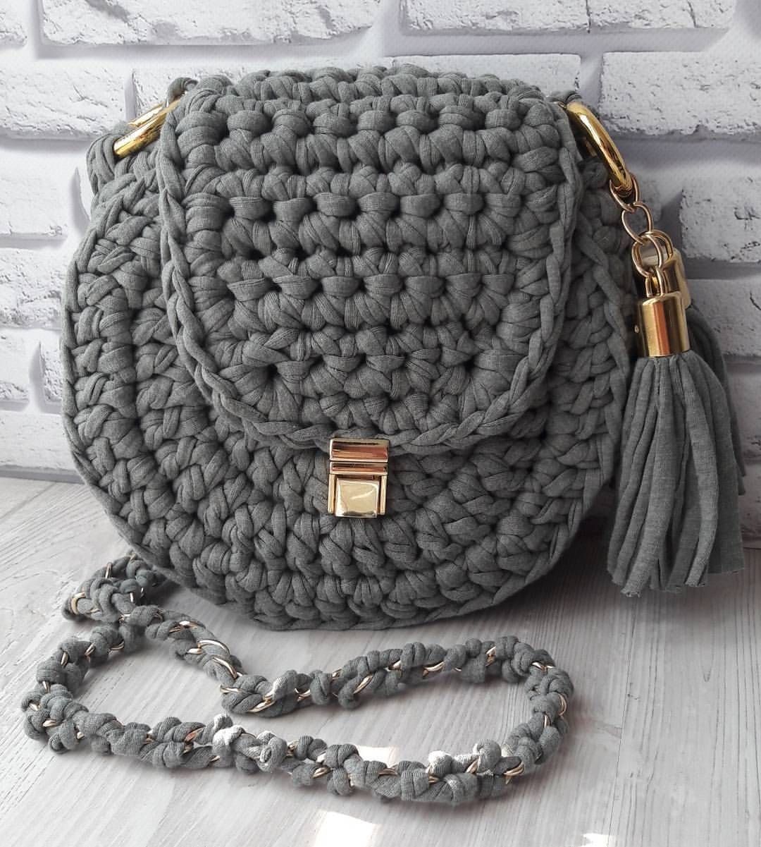 Вязаная круглая сумка из трикотажной пряжи крючком