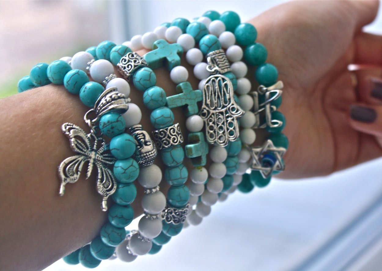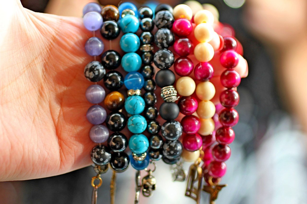 Много браслетов из камней