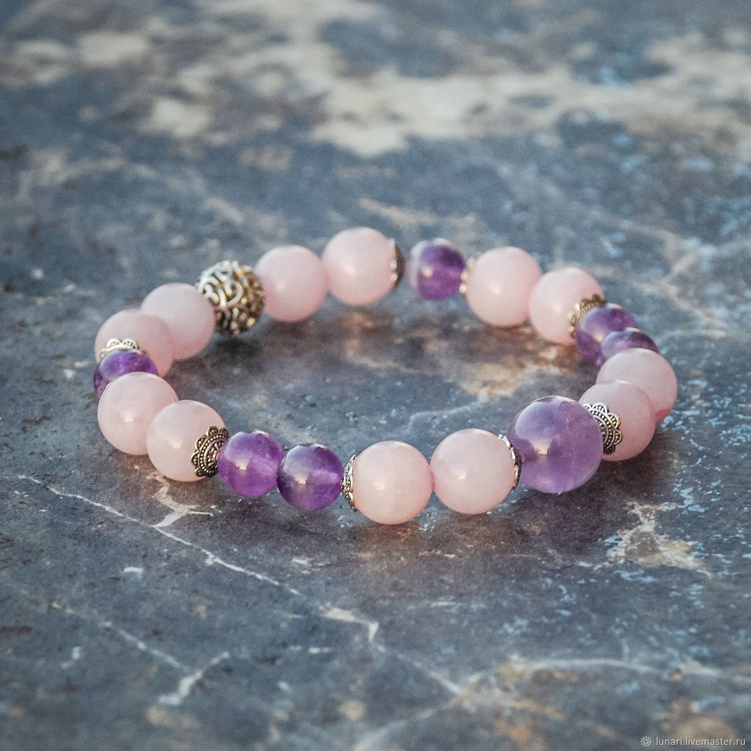 Браслет с аметистом и кварцем