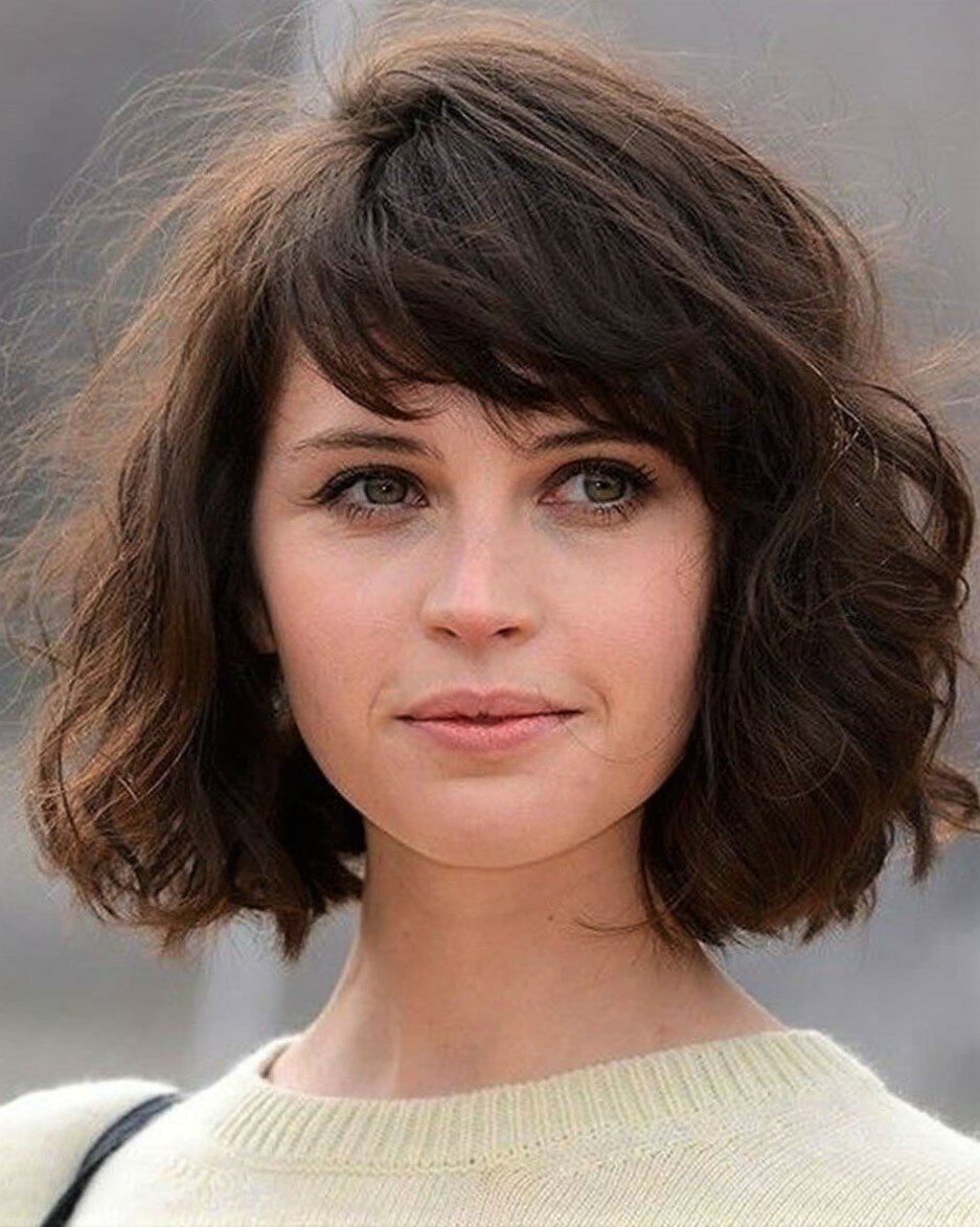 Стрижка на вьющиеся волосы с челкой