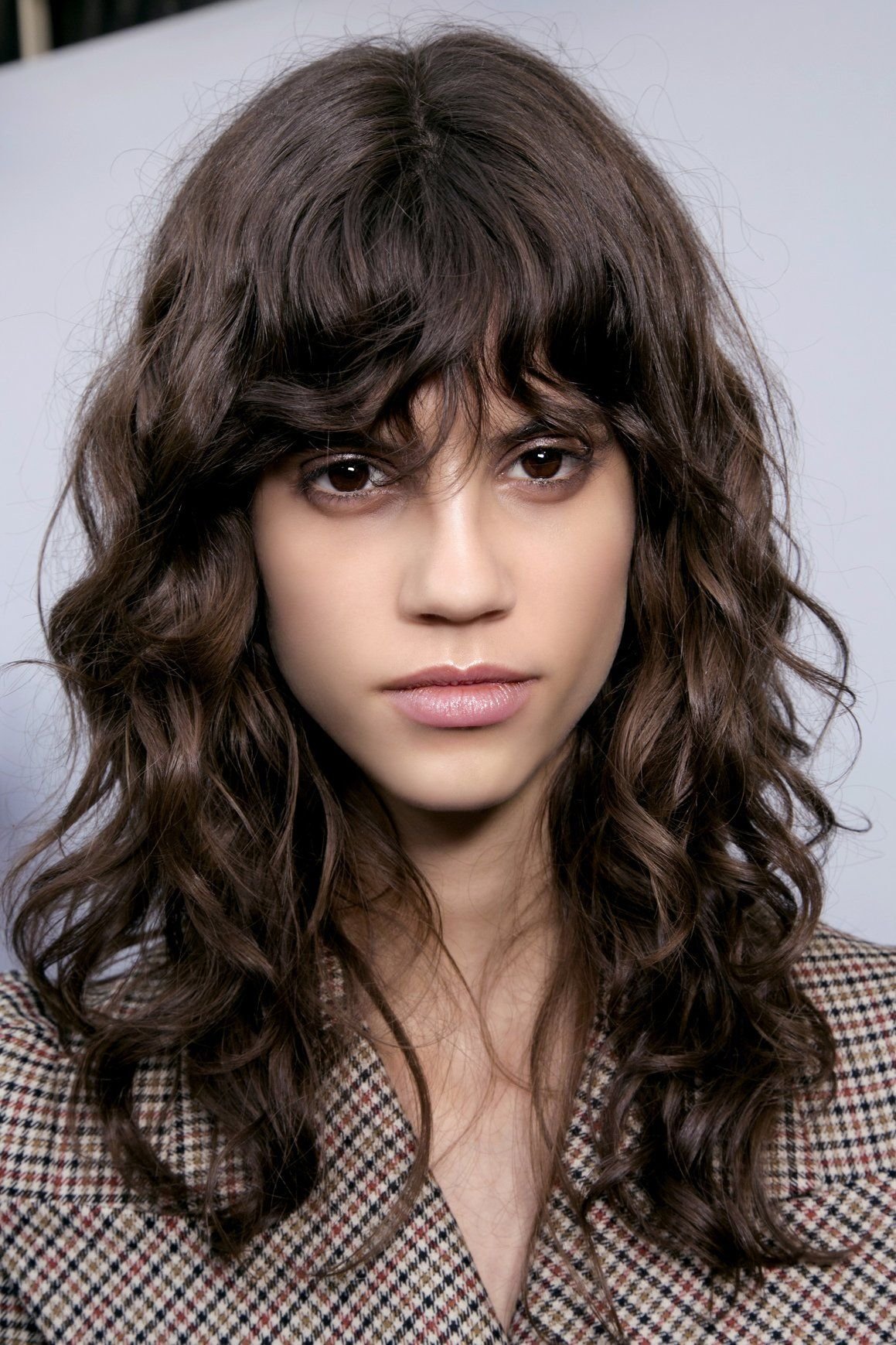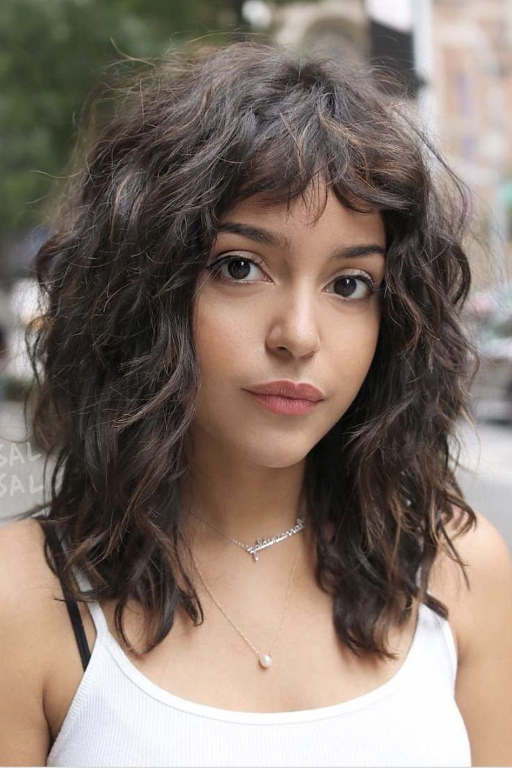 Стрижка на длинные кудрявые волосы с челкой