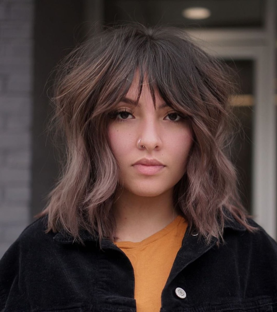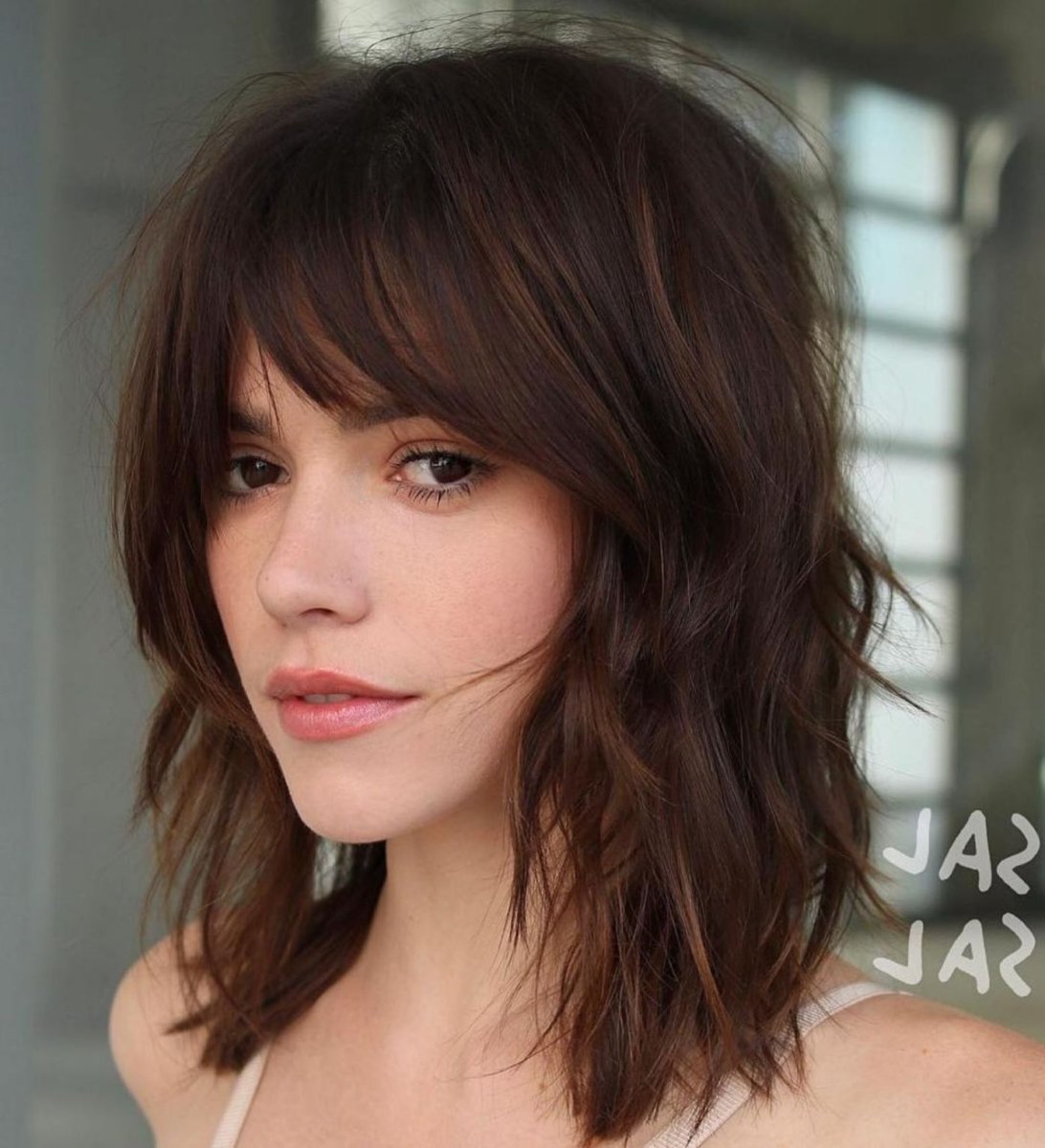 Стрижка Шегги на средние волосы с челкой