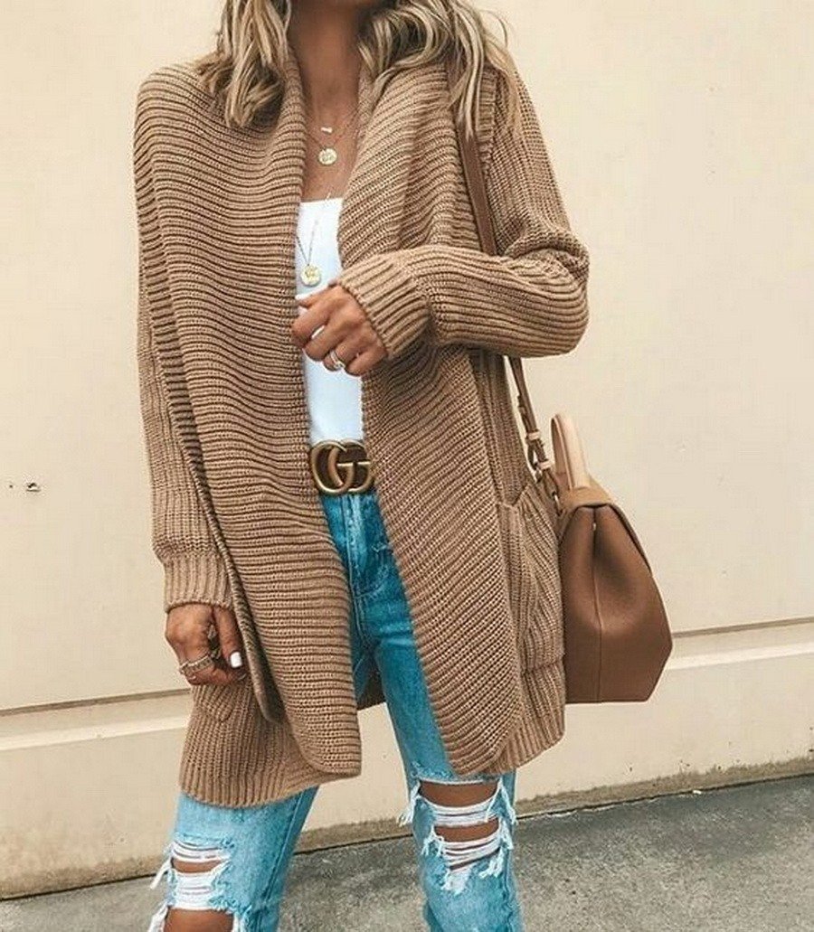 Вязаное пальто оверсайз спицами из толстой пряжи