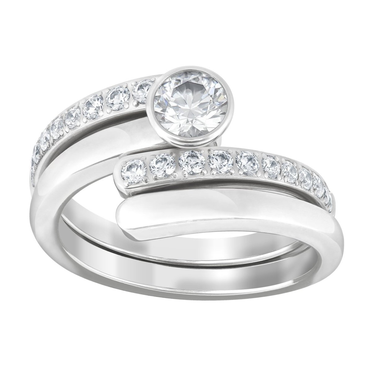 Attract кольцо, белый Кристалл, родиевое покрытие