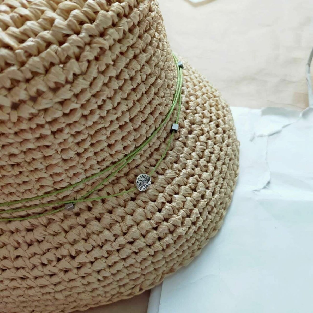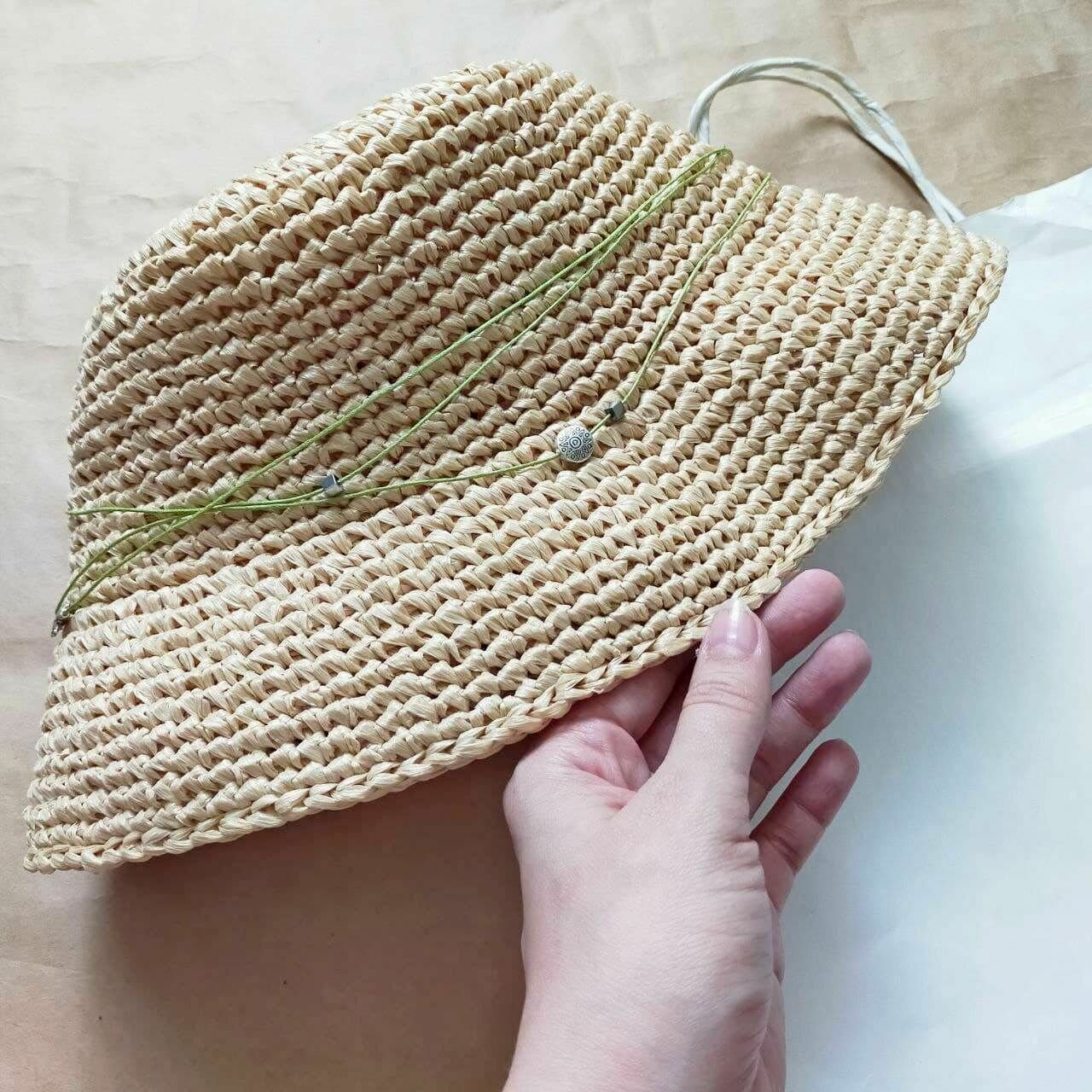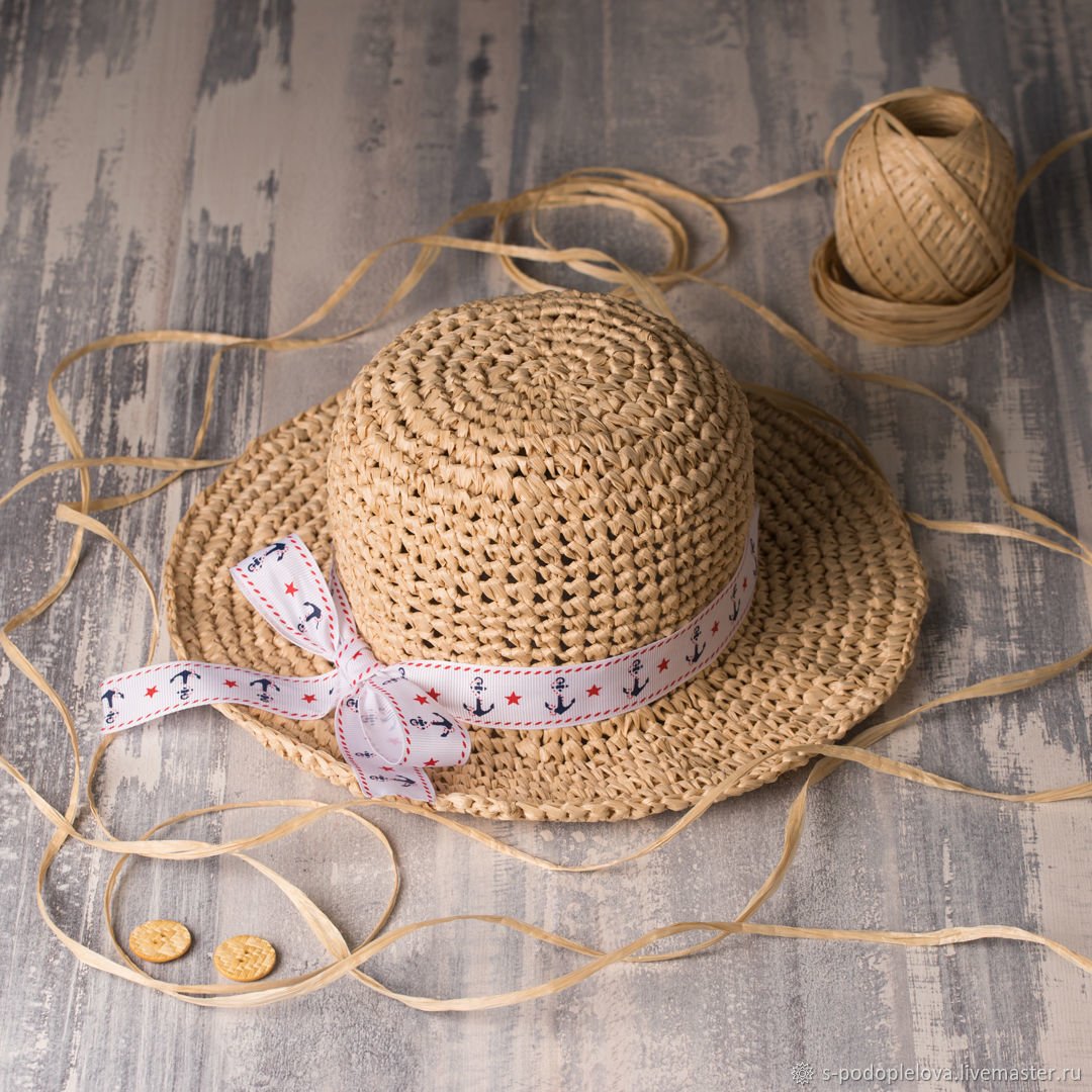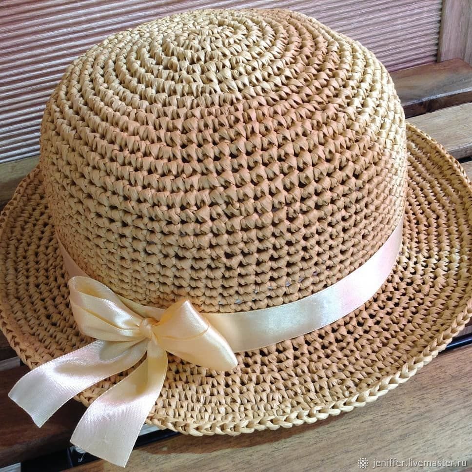 Шляпка из рафии крючком