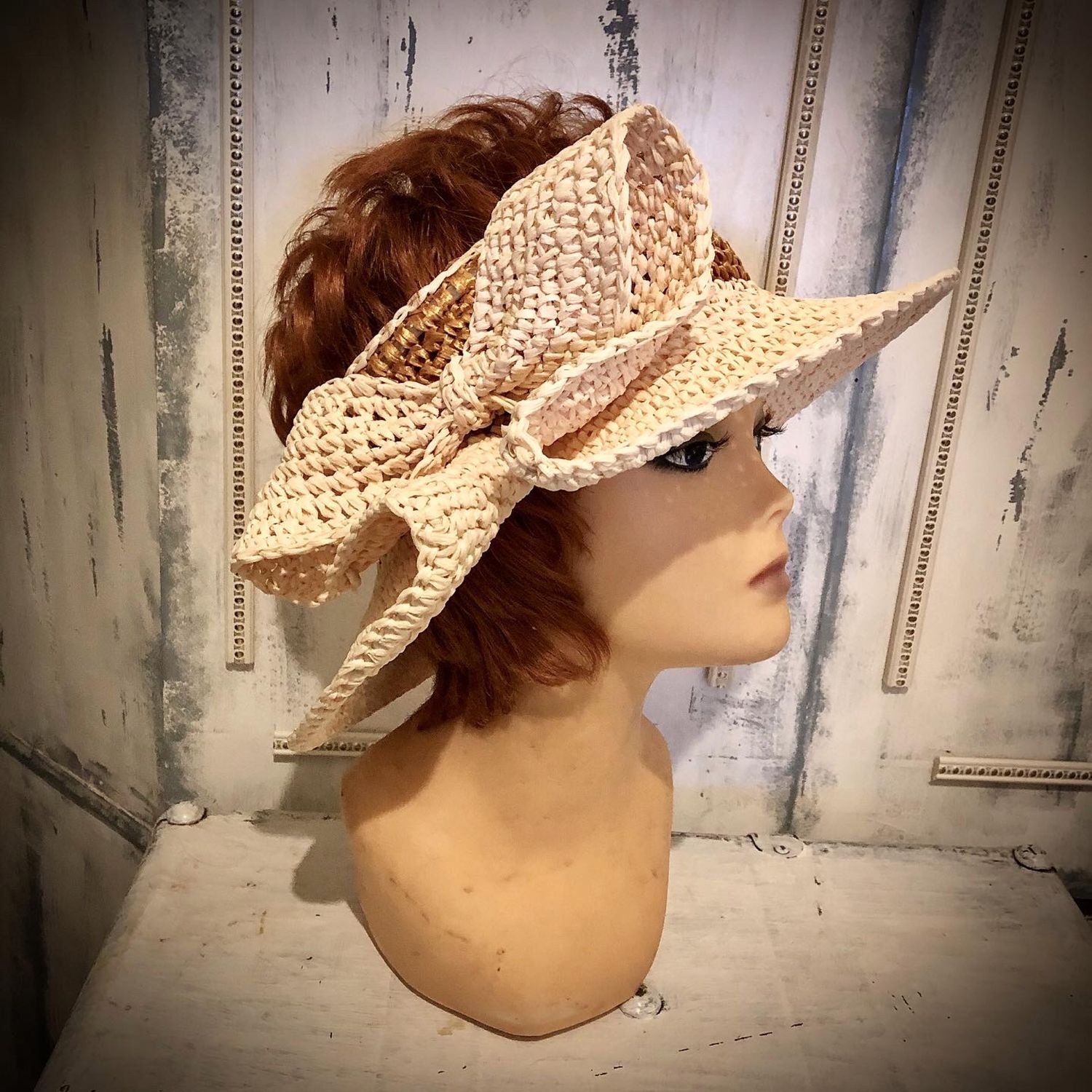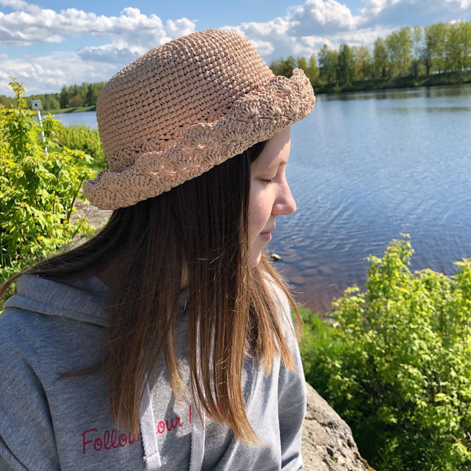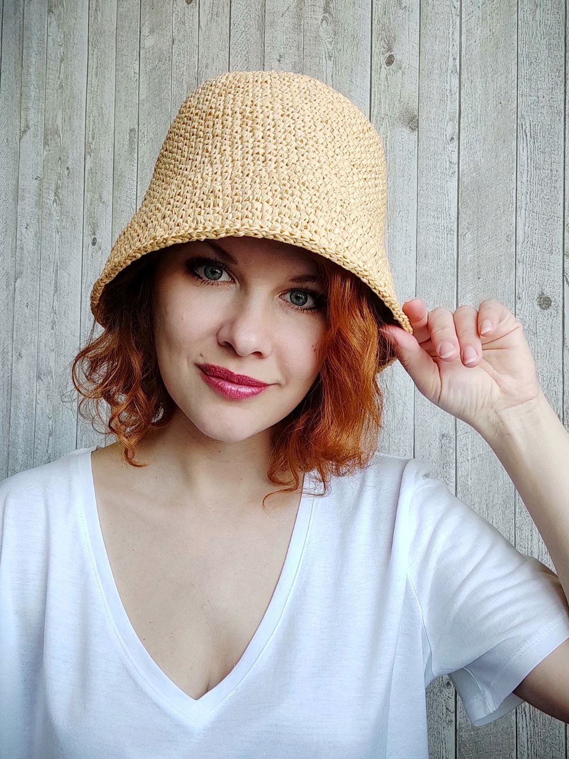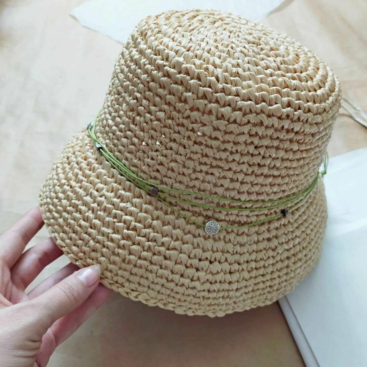 Шляпка из рафии крючком