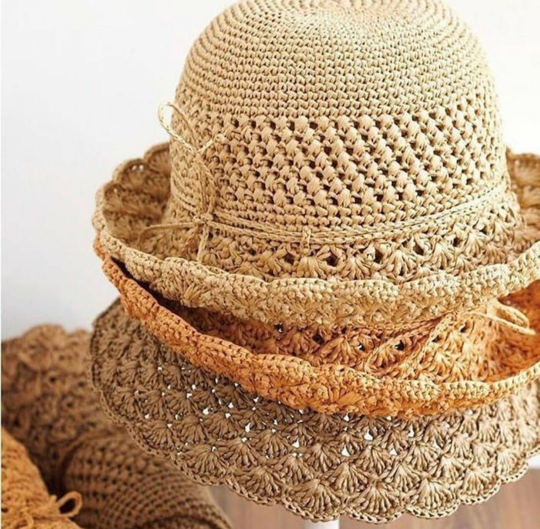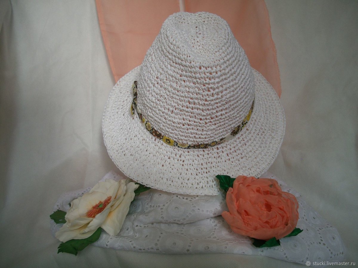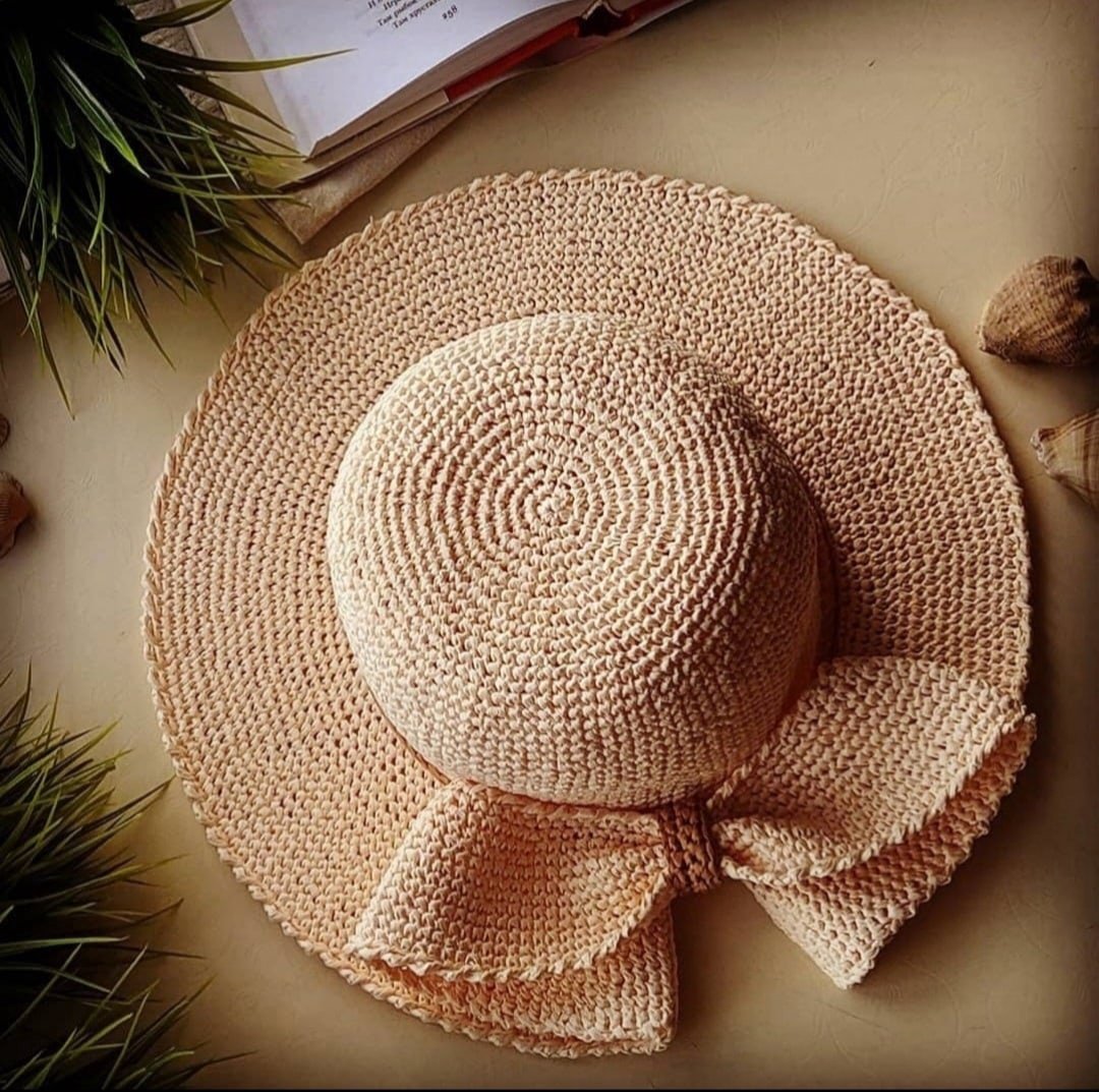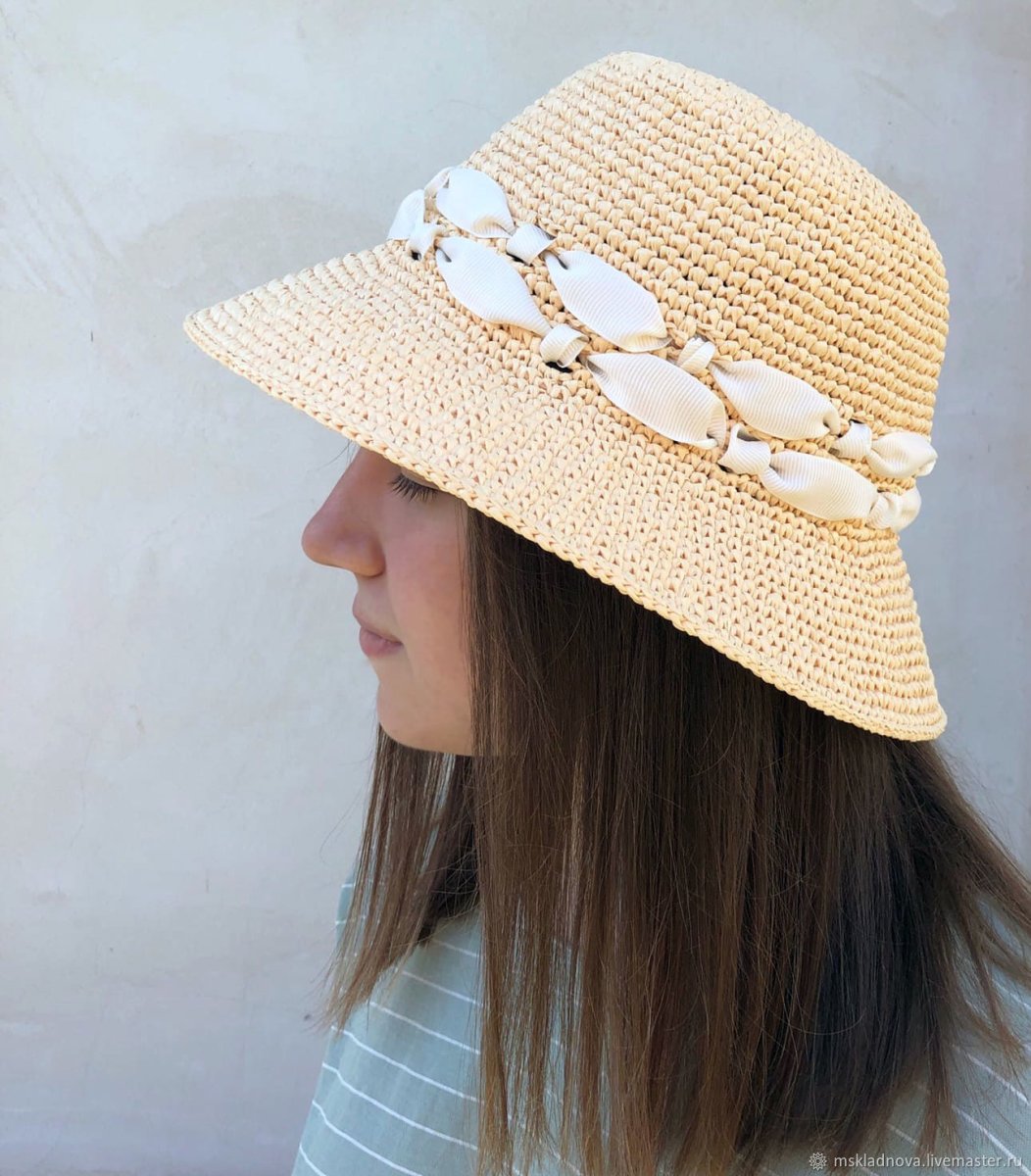 Шляпа вязаная крючком из рафии