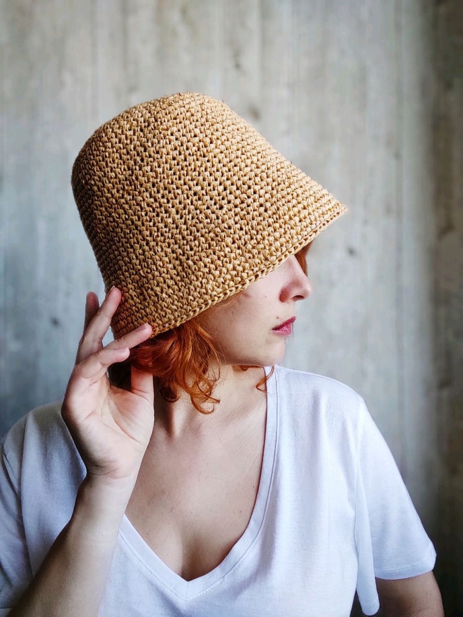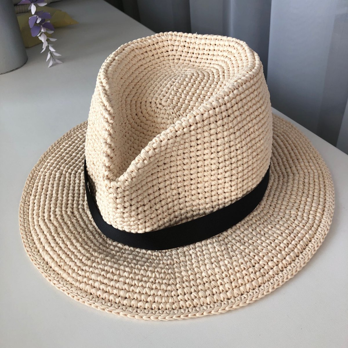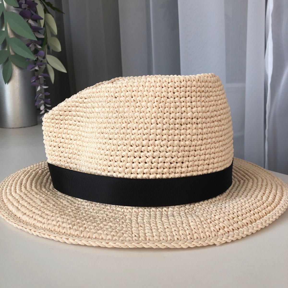 Шляпа вязаная крючком из рафии