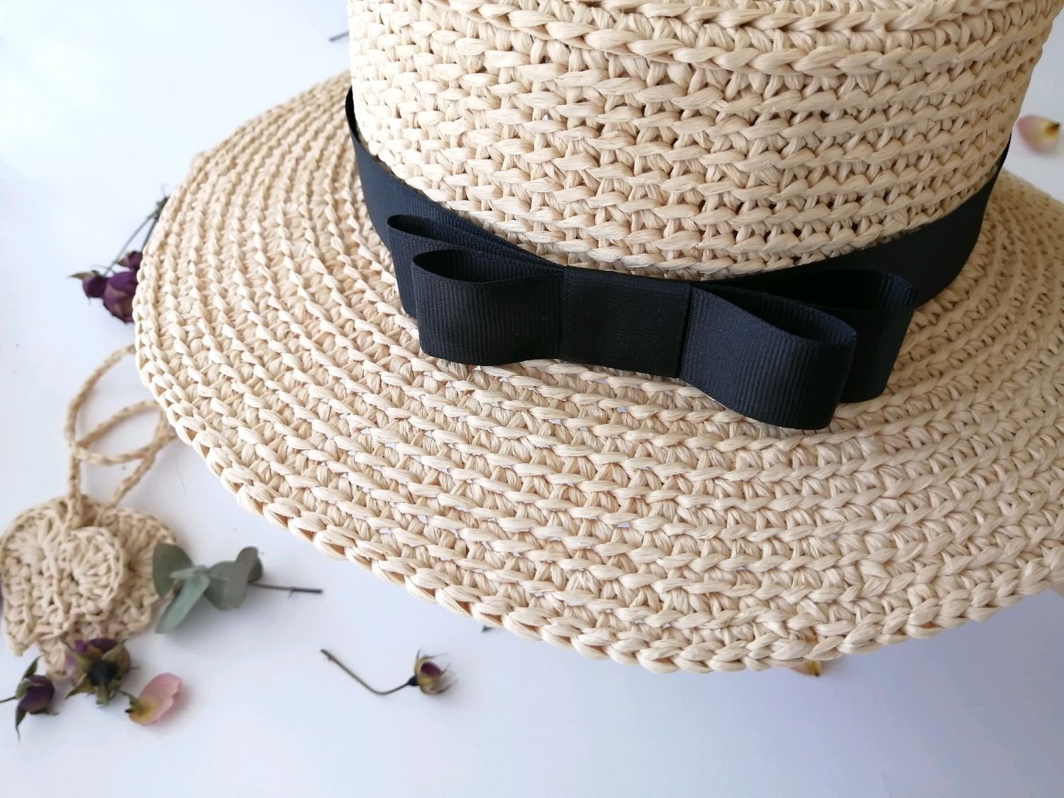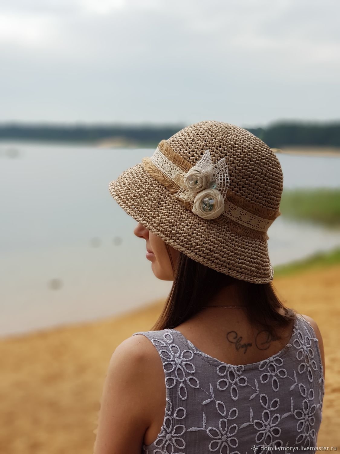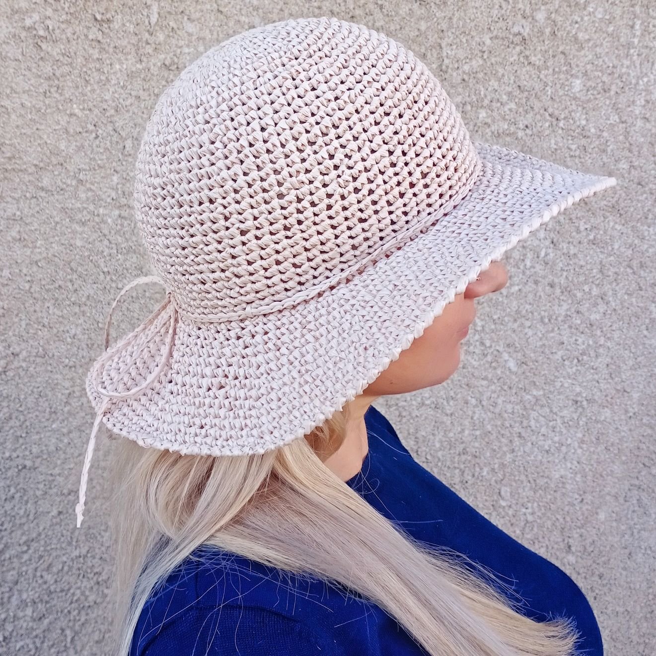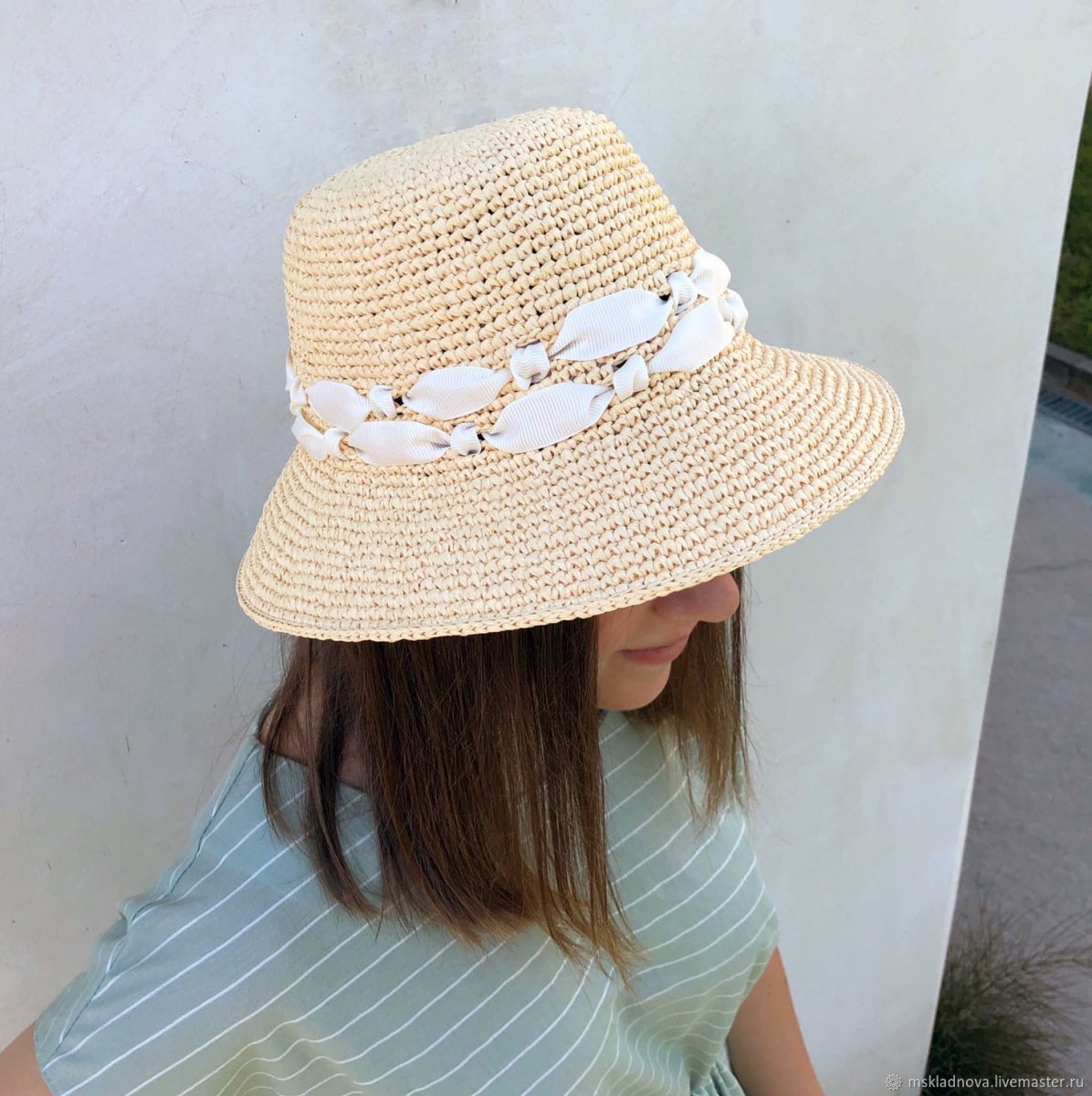 Шляпа вязаная крючком из рафии