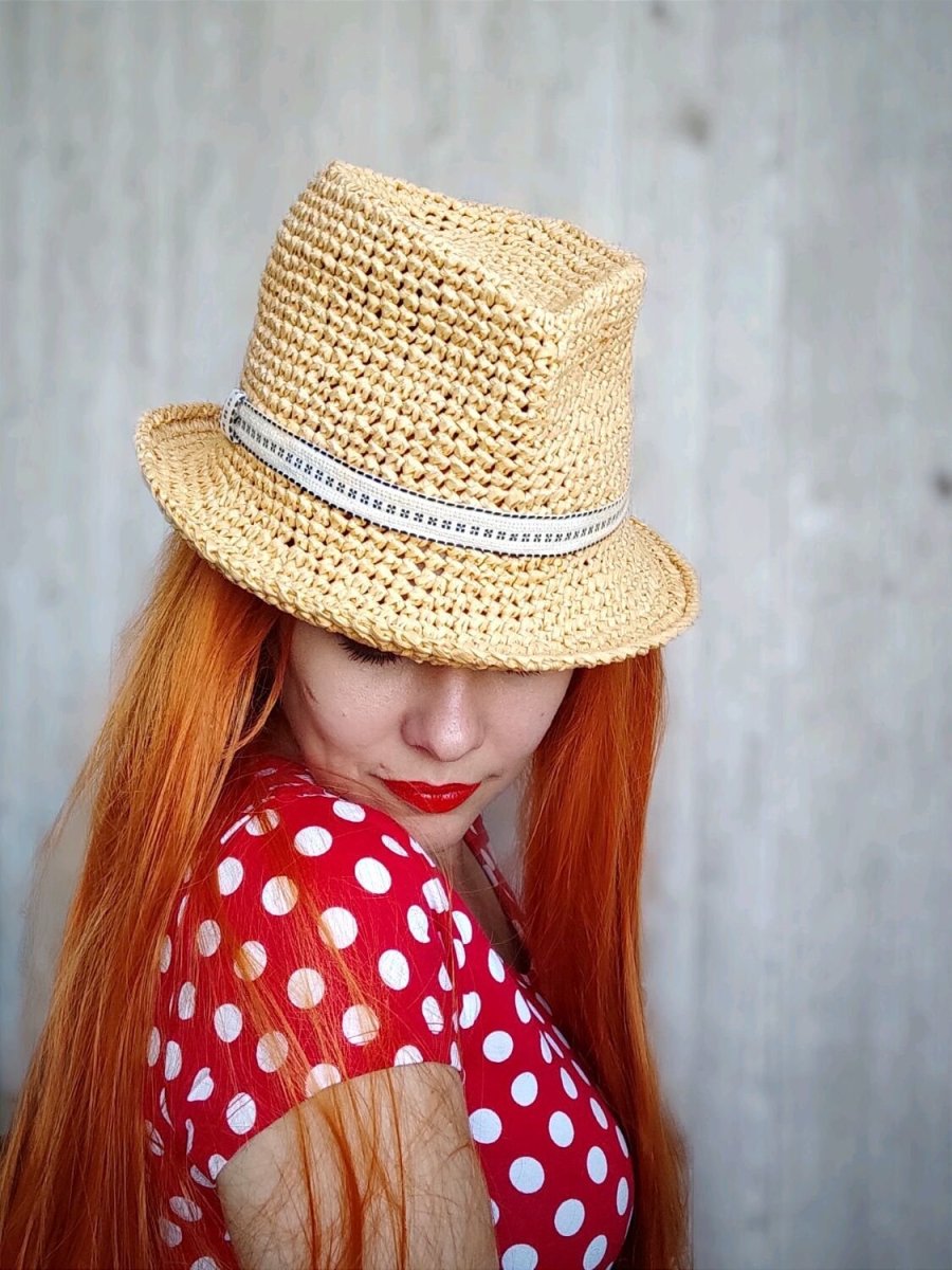 Шляпа Федора из рафии схема и описание
