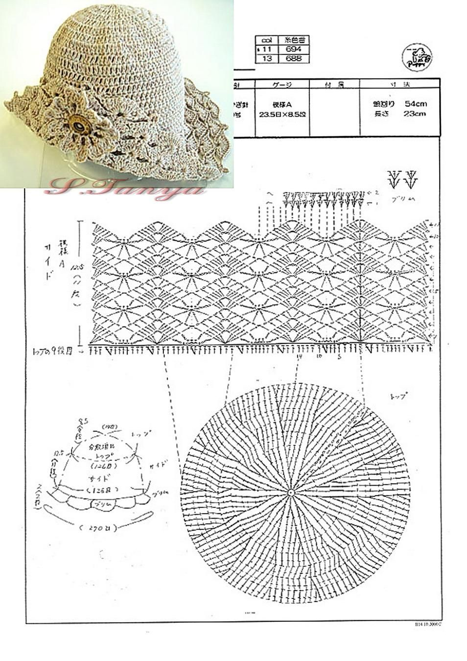 Вязаные шляпки крючком со схемами для женщин летние с полями