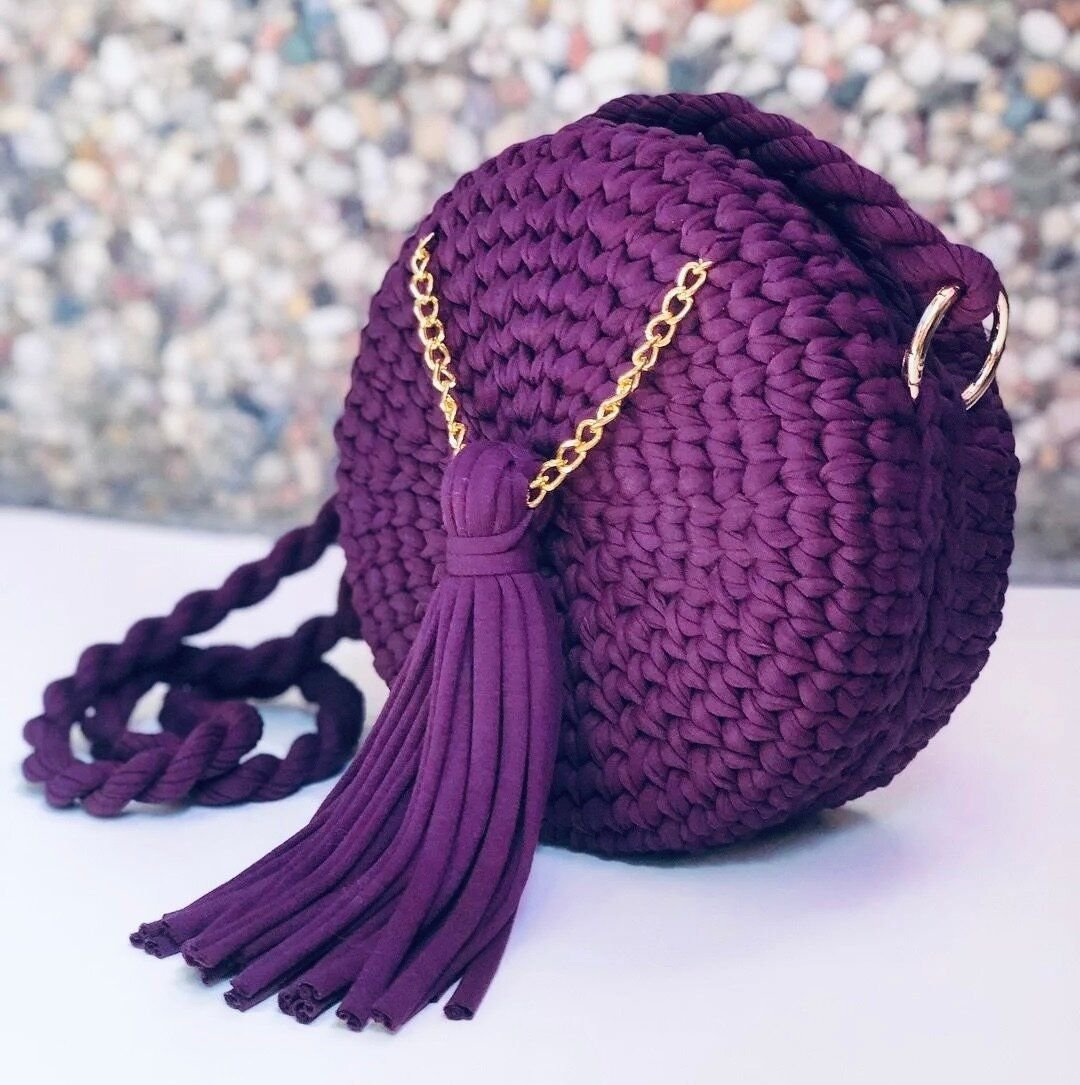 Круглая сумка из трикотажной пряжи