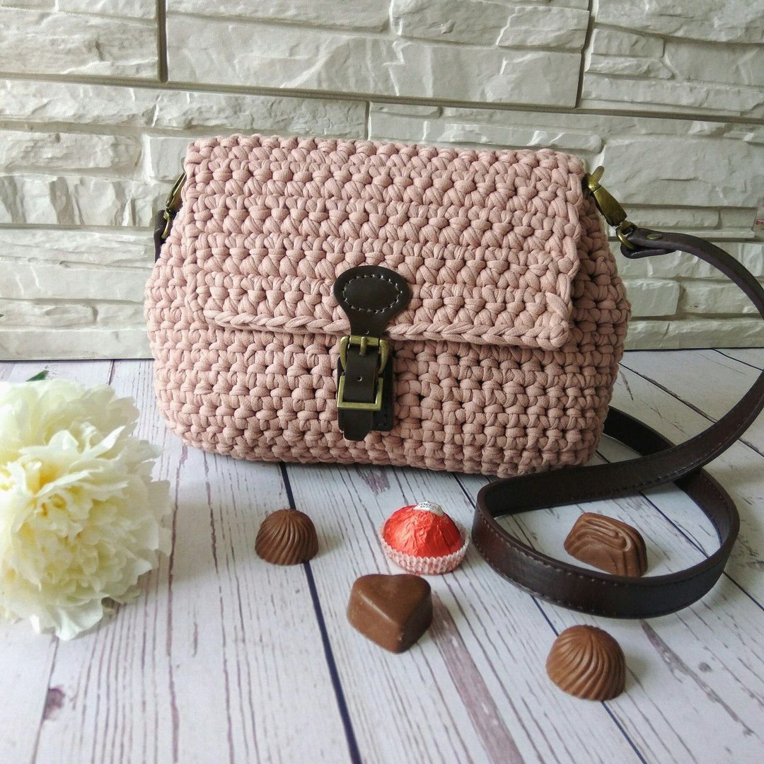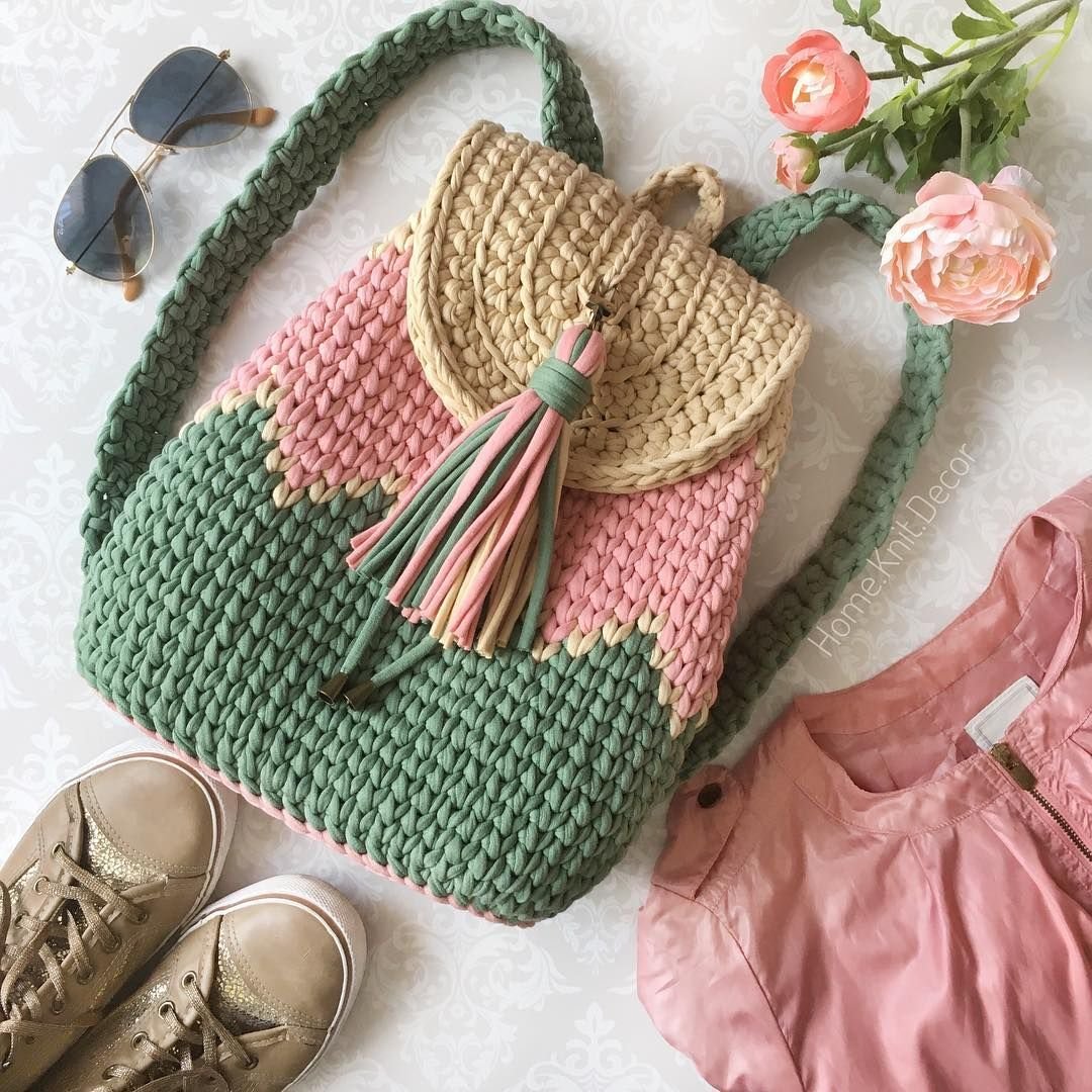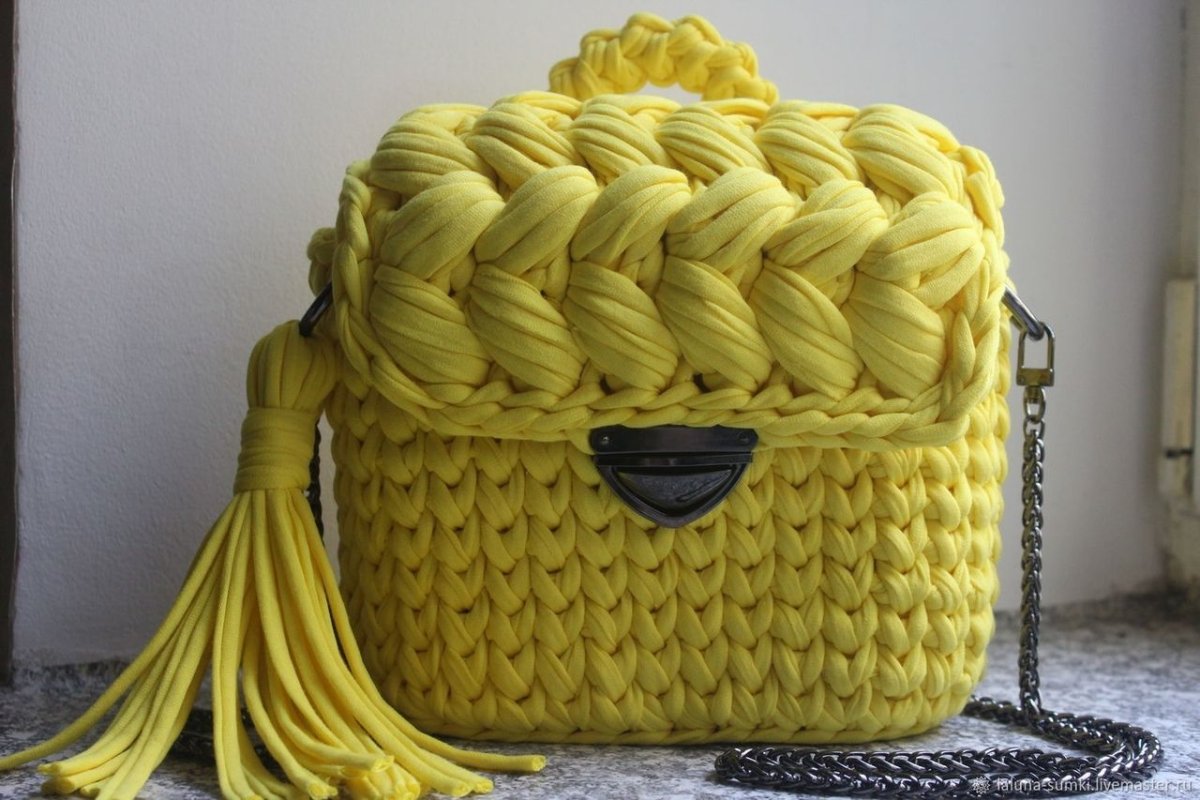 Вязаные сумки крючком из трикотажной пряжи