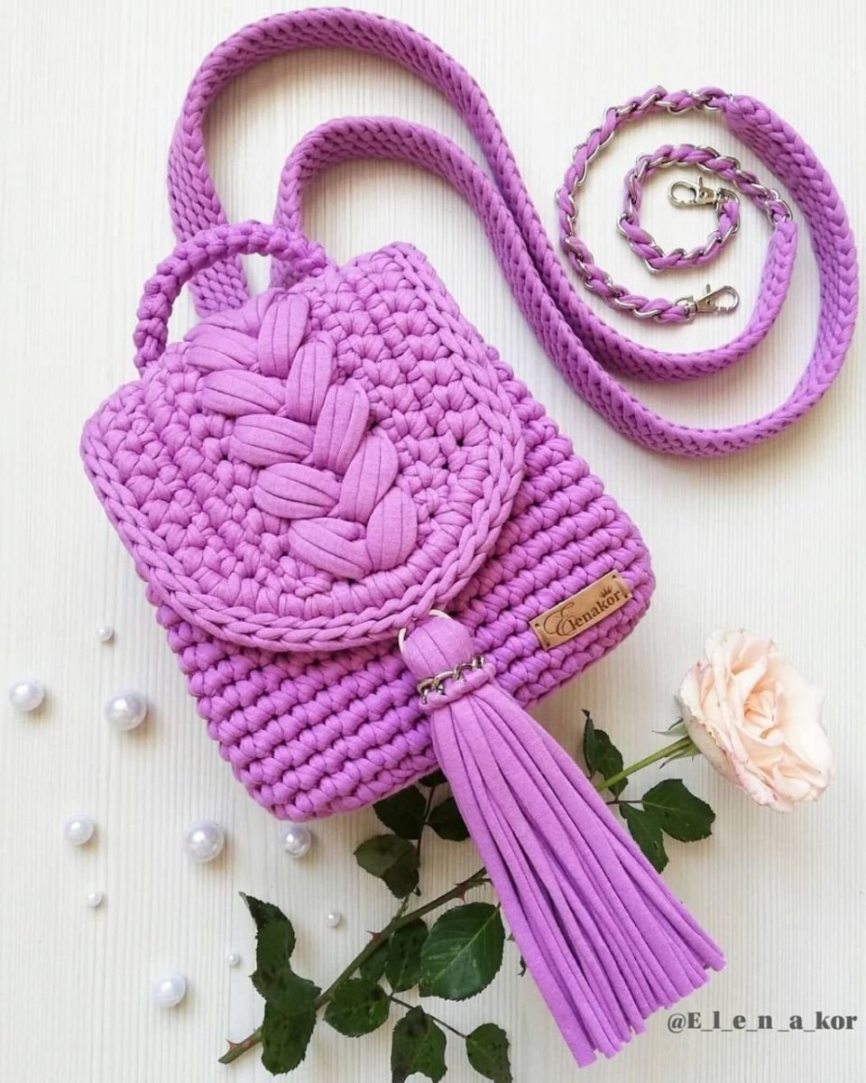 Схема вязания сумки из трикотажной пряжи крючком