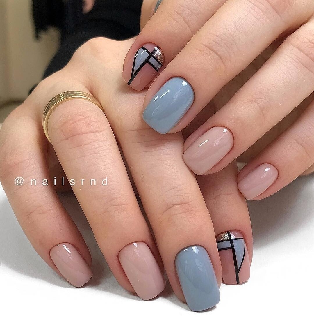 Ногти в серо голубых тонах