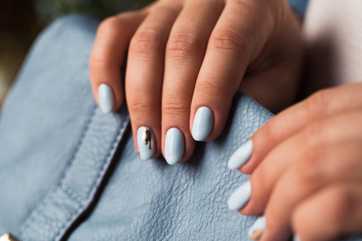 Пастельный нежный голубой цвет маникюра