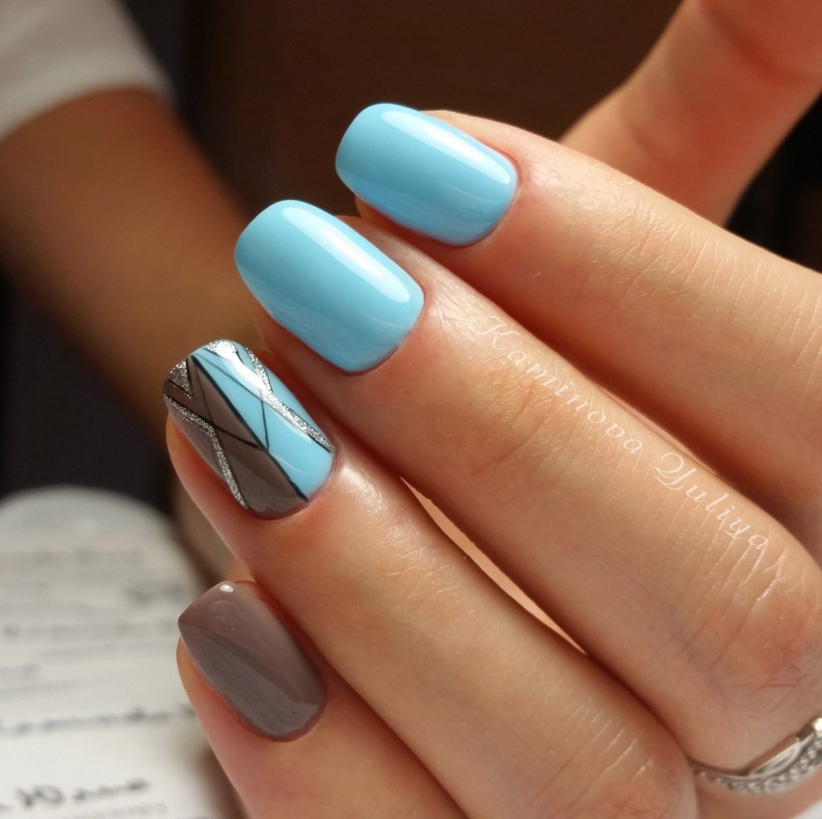 Маникюр в серо голубых тонах