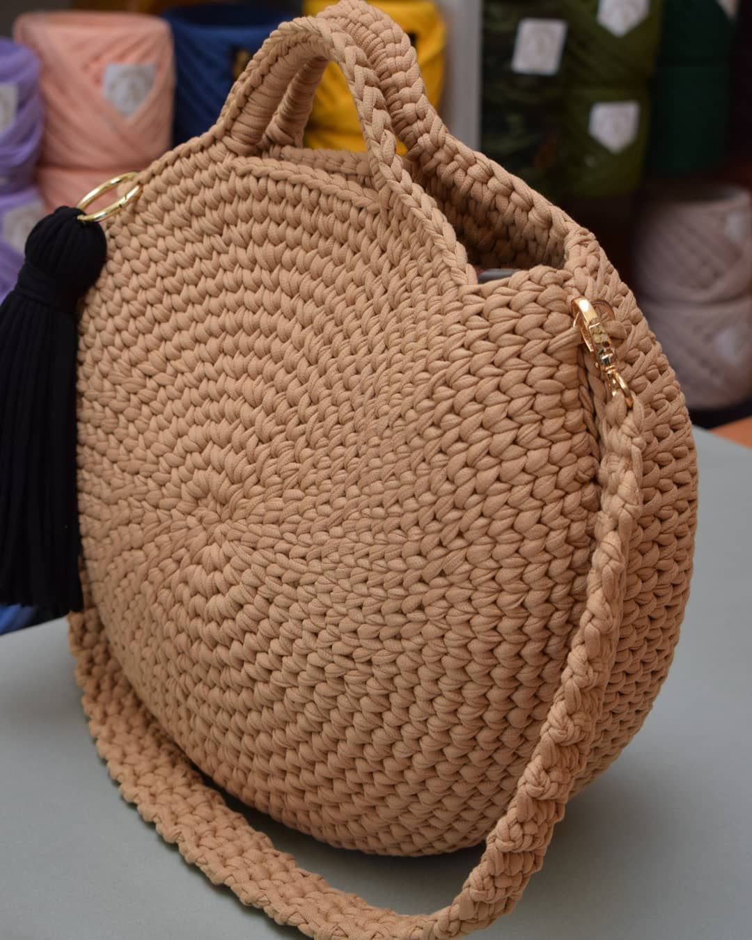 Круглая сумка из трикотажной пряжи крючком